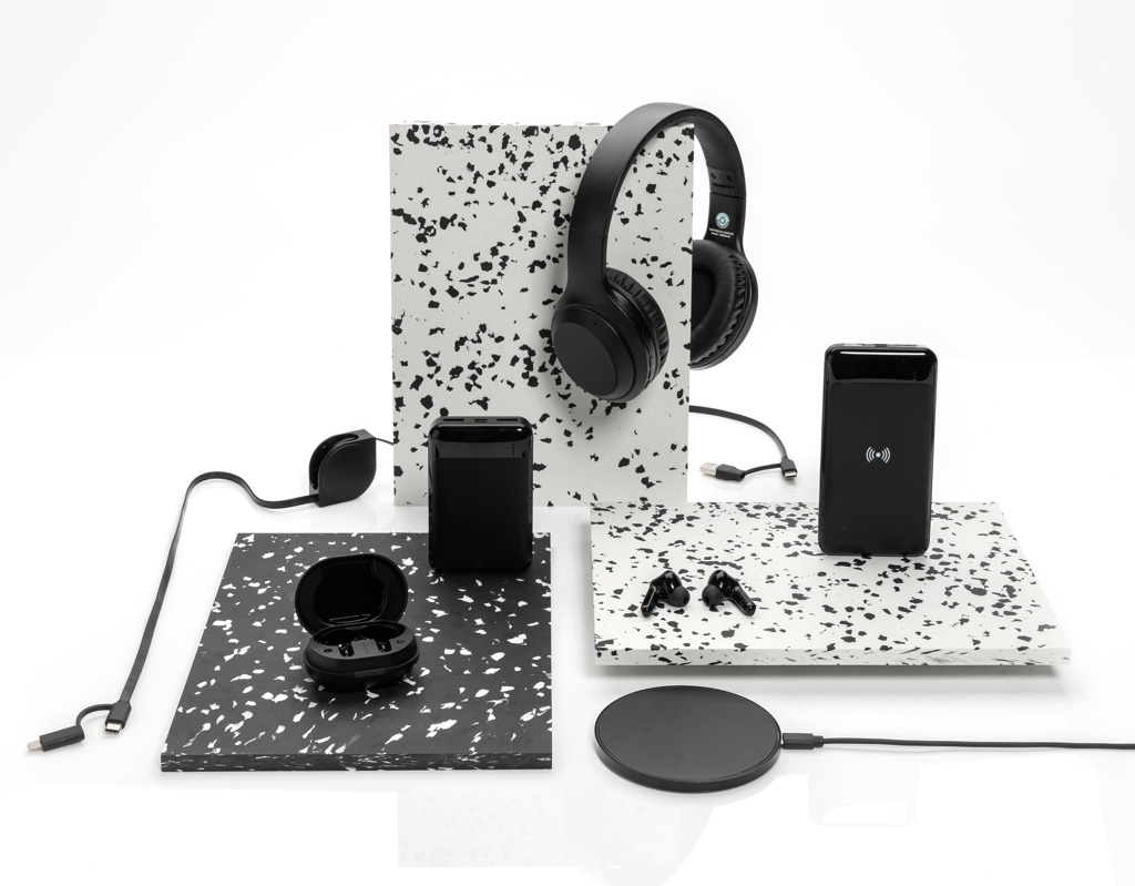 TWS kuulokkeet, joiden runko ja latauskotelo on valmistettu RCS sertifioidusta kierrätetystä ABS muovista. RCS (Recycled Claim Standard) on standardi, jolla varmennetaan tuotteen kierrätetty materiaali koko toimitusketjun ajan. Kierrätetyn materiaalin kokonaismäärä:67% perustuen tuotteen painoon. RCS-standardia käytetään, kun osa tuotteesta on valmistettu kierrätetystä materiaalista. Kuulokkeet hyödyntävät BT 5.0 taaten näin sujuvan yhdistämisen ja pitkäkestoisen soittoajan. 40mAh:n akku varmistaa jopa 4 tunnin soittoajan, ja täyteenlatauksen 300mAh:n latausrasiassa 1.5 tunnissa. Toimintaetäisyys jopa 10 metriä. Mikrofonilla ja vastaustoiminnolla. Tuote ja lisätarvikkeet PVC-vapaita. Sisältää PVC-vapaan TPE:stä valmistetun latauskaapelin.