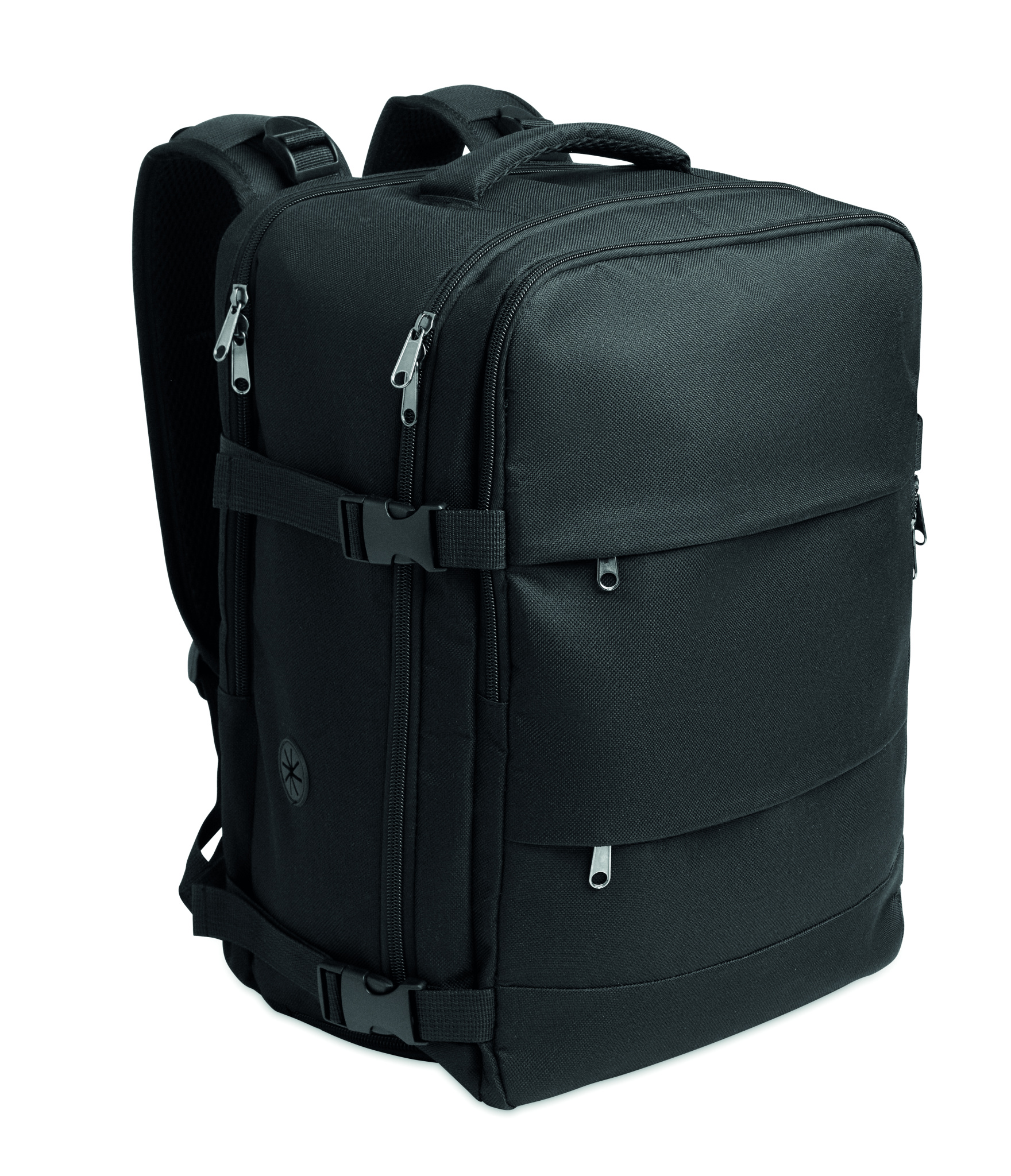 Käsimatkatava laajennettava reppu 600D RPET-polyesteriä, PU-selkäpuoli ja 180° aukko. Sisältää kenkälokeron, pehmustetun 15'' tietokoneen taskun, verkkohihnat, matkatavarahihnan ja sivusoljet.