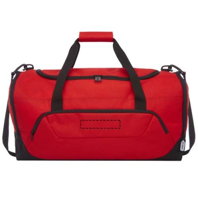 Kestävä duffelilaukku valmistettu 100 % kierrätetystä, kuluttajakäytössä olleesta muovista, mikä auttaa vähentämään muovijätettä. Siinä on suuri päälokero ja vetoketjutasku, pehmustettu olkahihna ja pehmustetut kahvat. Tämän laukun valmistamiseksi kierrätetään noin 27 muovipulloa.