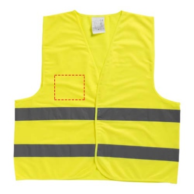 Korkean näkyvyyden turvaliivi, luokka 2, sopii 165–180 cm pitkille henkilöille. Toimitetaan saman värisessä pussissa, jonka mitat ovat 21 x 17 cm. Suuri painatusalue liivien etu- ja takaosassa sekä pussissa. Heijastinvaatteet ammattikäyttöön. Fluoresoiva tausta ja heijastava teippi. Standardit EN ISO 20471:2013+A1:2016. Näiden vaatteiden CE-merkintä osoittaa, että ne täyttävät EU-asetuksen 2016/425/EU vaatimukset luokan II henkilösuojaimille.