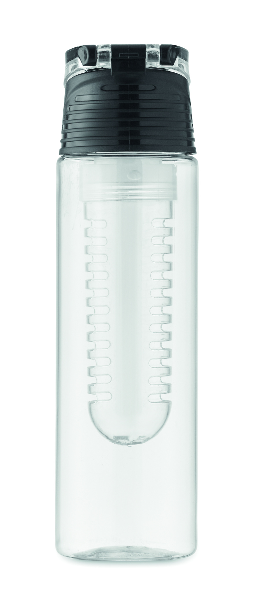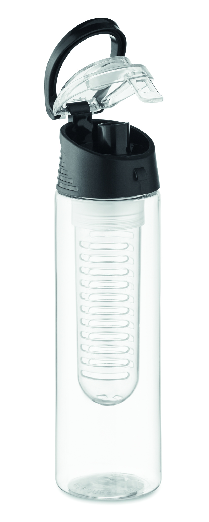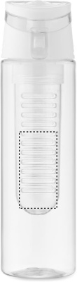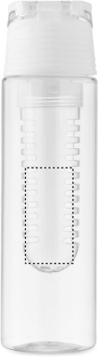 RPET-vesipullo, jossa irrotettava hedelmäsuutin kantokahvalla ja vuotamattomalla kannella. Tilavuus 500 ml.