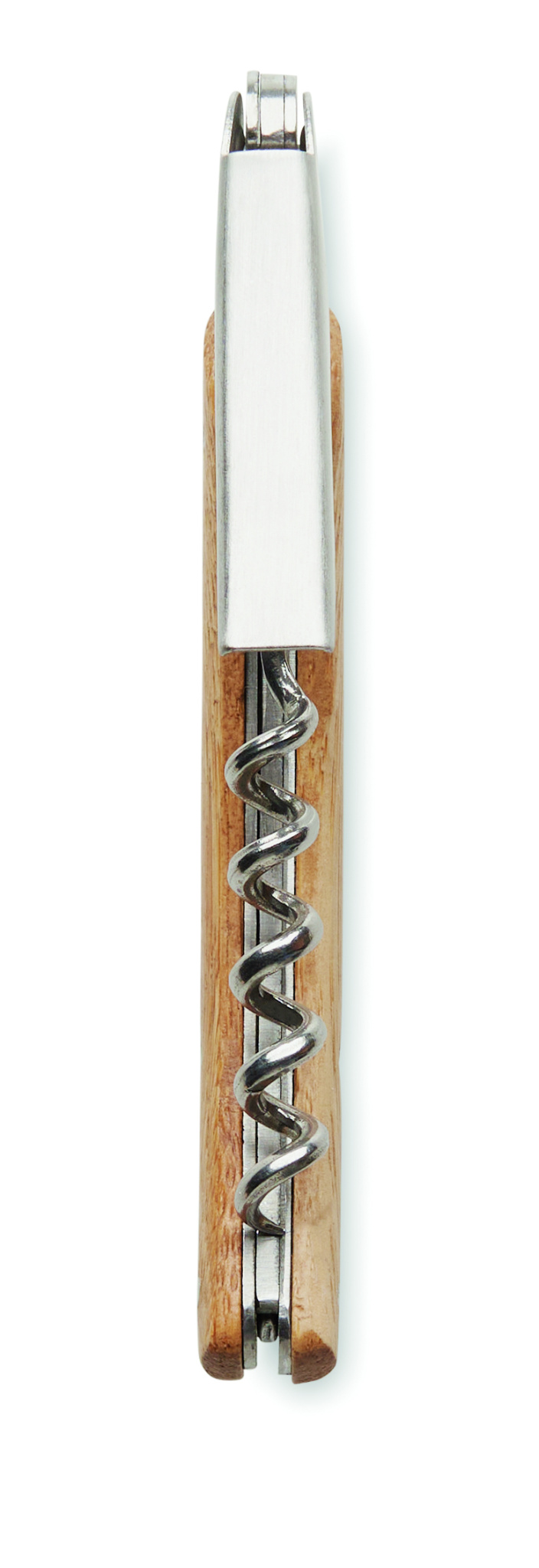 Ruostumattomasta teräksestä valmistettu alkuperäinen tarjoilijaveitsi, jossa kaksinkertainen korkkiruuviavaaja ja bambupinta.