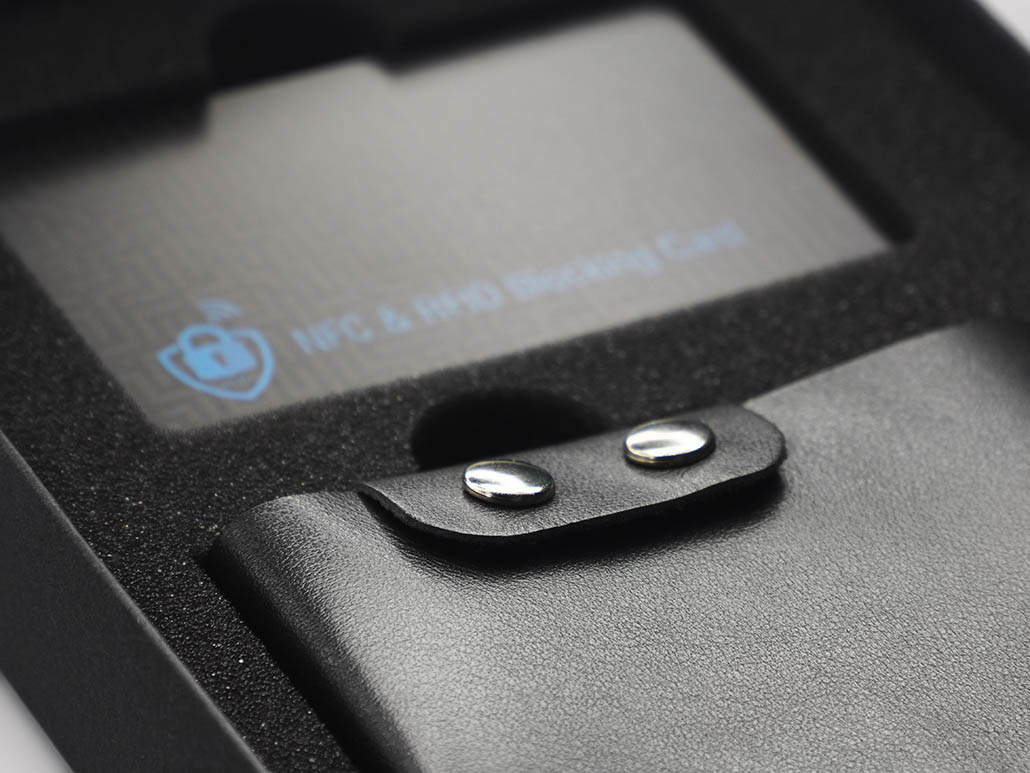 Sisältää NFC- ja RFID-signaalin estävän kortin.