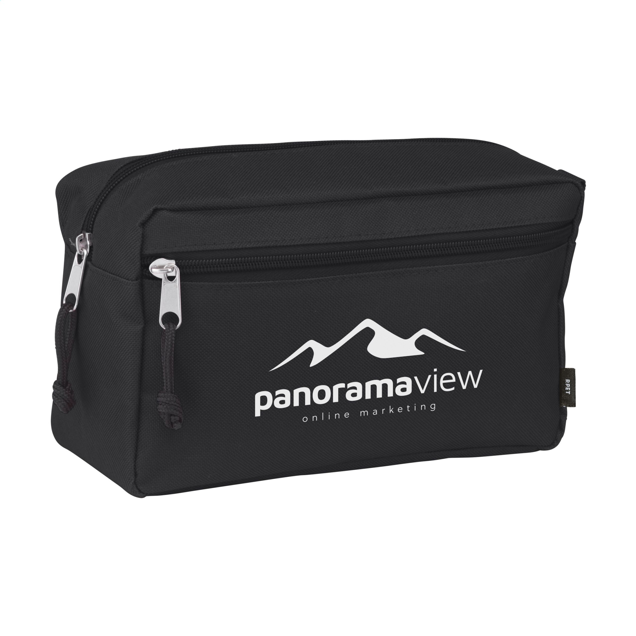 Vau! Tilava laukku meikin tai hygieniatuotteiden säilytykseen. Tämä tuote on valmistettu 600D RPET-polyesteristä, materiaalista, joka on valmistettu kierrätetyistä PET-pulloista ja tekstiilikuiduista. Mukana lenkki ja ylimääräinen vetoketjutasku. GRS-sertifioitu. Kierrätysmateriaali yhteensä: 90 %.