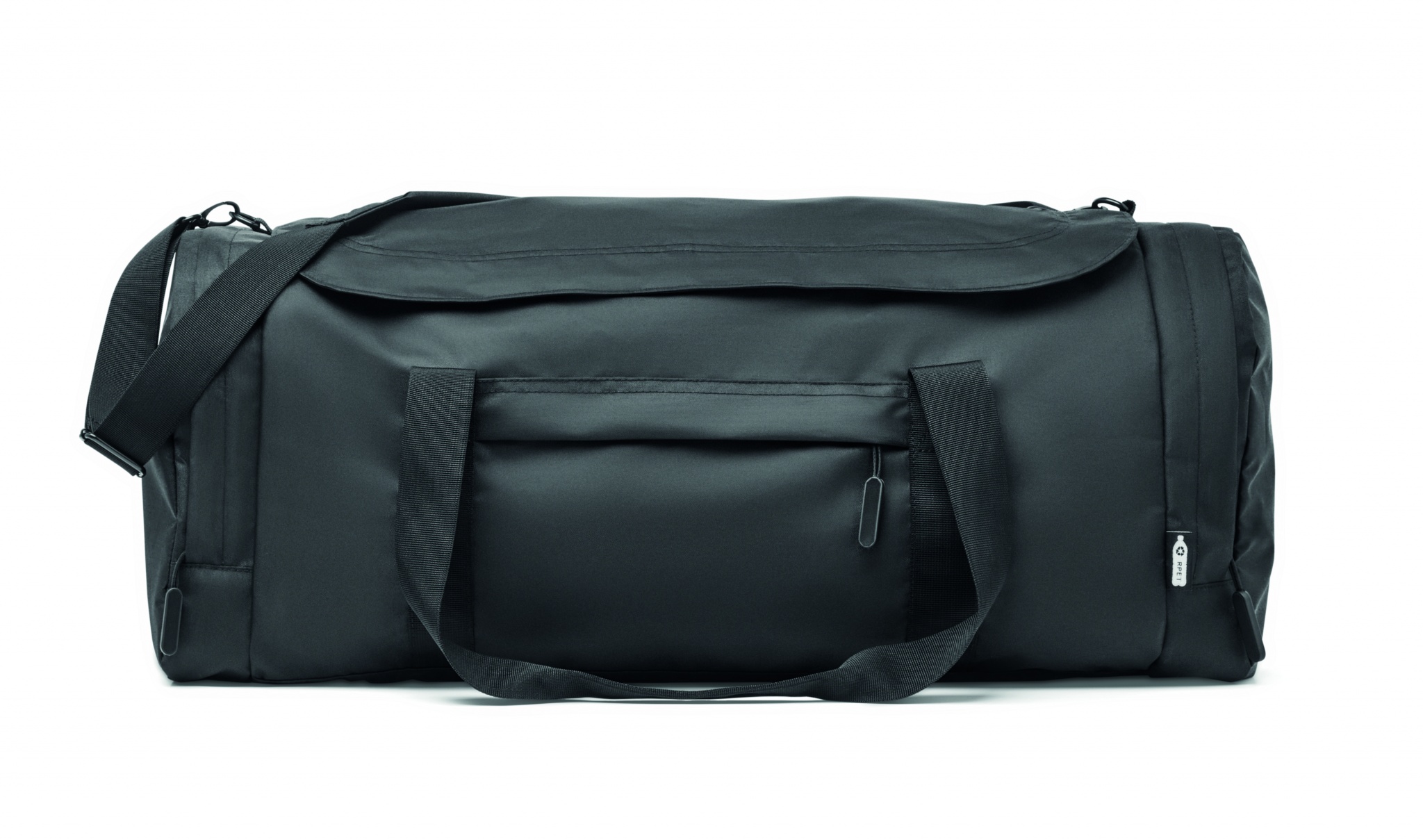 Suuri laukku urheiluun tai matkalle 300D RPET-polyesteristä. Päälokero vetoketjulla ja muita säilytyslokeroita. Irrotettava vahvistettu alaosa sekä säädettävä ja irrotettava olkahihna.