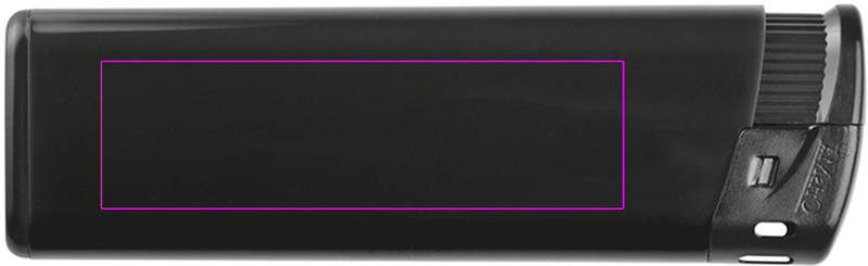 Elektroninen muovisytytin liekinsäädöllä ja uudelleentäyttötoiminnolla. Painamme logosi sytyttimeen.