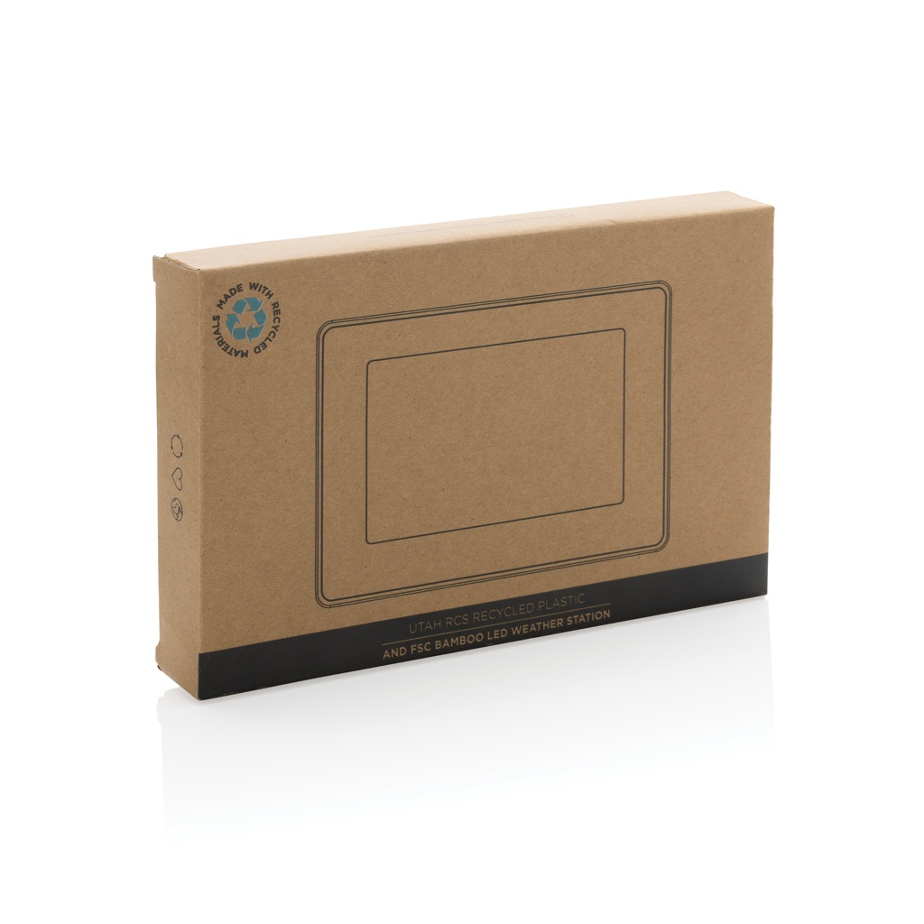 Kello isolla lED-näytöllä valmistettuna RCS (Recycled Claim Standard) sertifioidusta kierrätetystä ABS:stä ja FSC® 100% bambusta. Kierrätetyn materiaalin kokonaismäärä: 76% perustuen tuotteen painoon. RCS sertifiointi varmistaa kierrätettyjen materiaalien täysin sertifioidun toimitusketjun. Korkealaatuinen LED näyttö. Toiminnot: kello, hälytys, lämpötila, 12/24 tunnin vaihtoehdot. Sisältää 100cm tyypin C latauskaapelin, joka on valmistettu RCS-sertifioidusta kierrätetystä TPE:stä. Pakattu FSC®-sekoituksesta valmistettuun kraft-pakkaukseen.