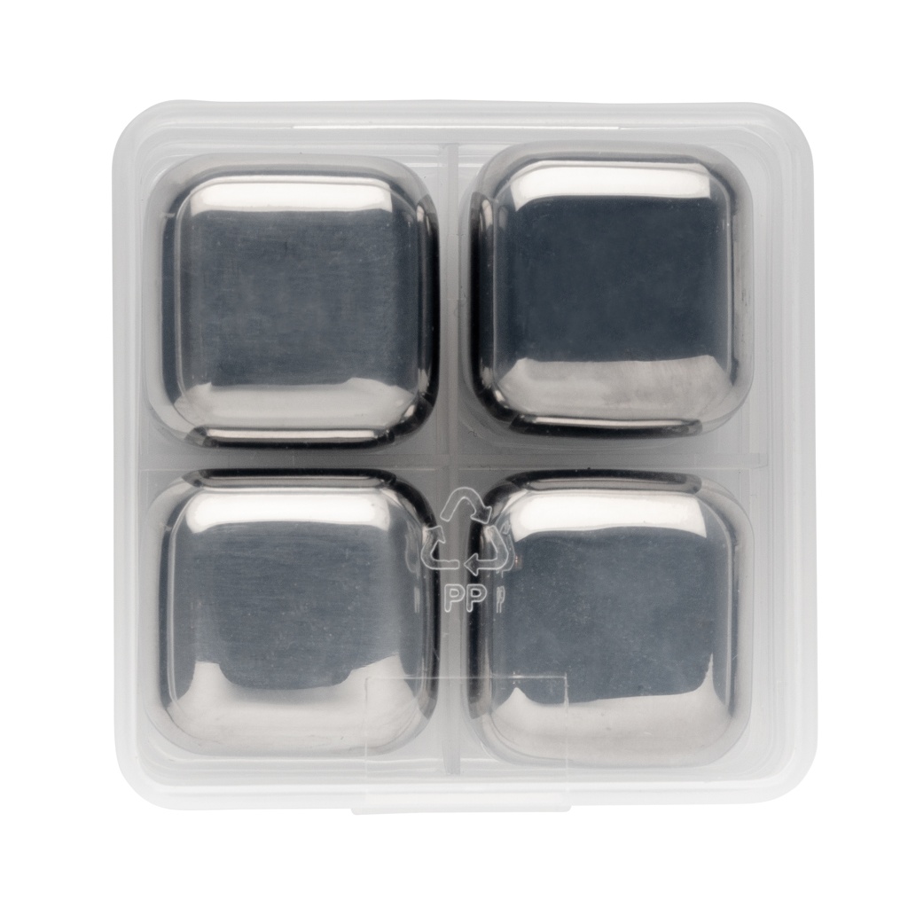Nauti jäähdytetystä juomastasi tällä settillä, joka koostuu neljästä ruostumattomasta teräksestä valmistetusta jääkuutiosta. Kuutiot auttavat säilyttämään suosikkijuoman maun laimentamatta. Setti tulee kätevässä säilytyslaatikossa. Niitä on helppo käyttää: säilytä ne vain pakastimessa ja ne ovat käyttövalmiita vain 3 tunnissa! Kuution koko 2,5x2,5x2,5 cm.
