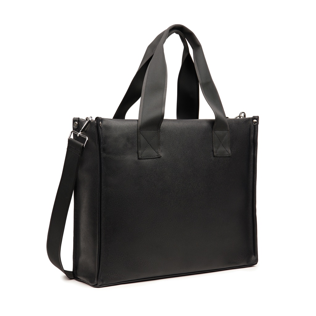 Tee päivittäisistä työmatkoistasi parempia tämän tote-laukun avulla. Ulkopuoli ja sisävuori on tehty kierrätetystä PU:sta RCS:n standardien mukaisesti, mikä osoittaa sitoutumisemme vastuulliseen materiaalihankintaan. Mukava olkahihna varmistaa, että tämä tote-laukku on täydellinen kiireisiin päiviin liikkeellä ollessa. Siinä on lisäksi pehmustettu lokero kannettavalle tietokoneelle tuomaan lisäturvaa ja järjestystä. RCS (Recycled Claim Standard) -sertifiointi takaa koko kierrätysmateriaalien toimitusketjun olevan sertifioitu. Kierrätysmateriaalin kokonaismäärä perustuu tuotteen kokonaispainoon. Tämä tuote sisältää 23 % RCS-sertifioitua kierrätettyä polyesteriä ja 7 % RCS-sertifioitua kierrätettyä PU:ta. Sopii kokonaisuudessaan 17 tuuman kokoisille tietokoneille. Huomaa, että näytön mitat eivät ole samat kuin koko tietokoneen mitat.