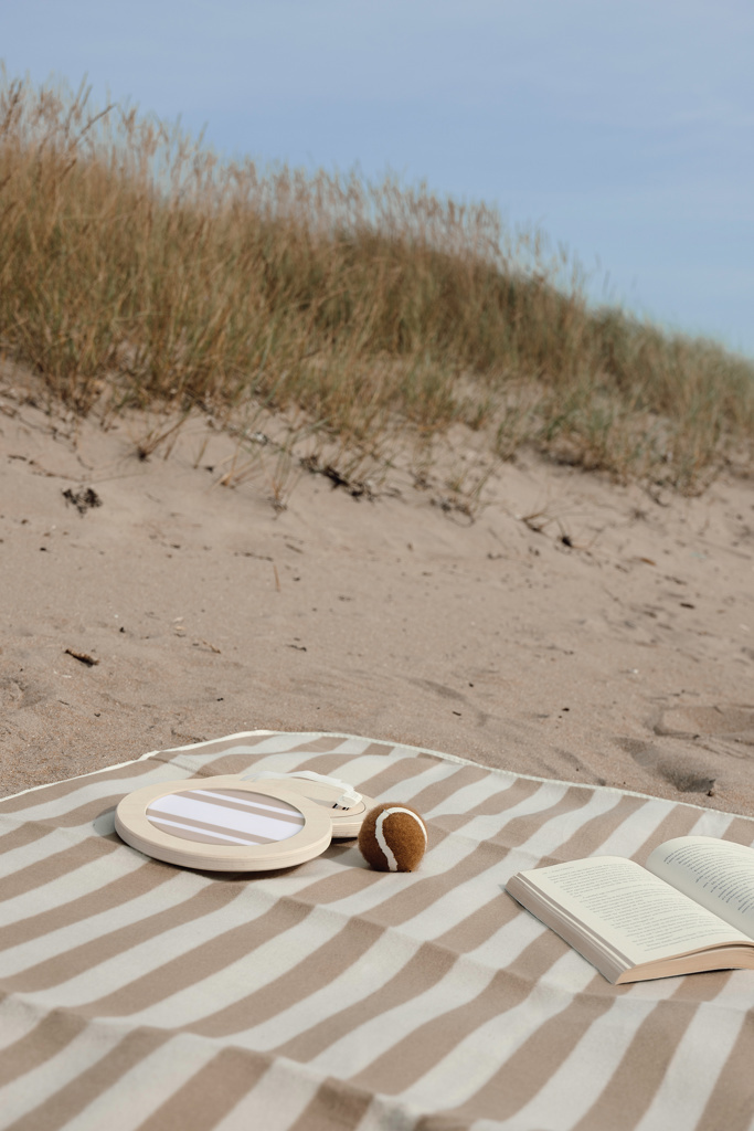 Täydellinen ulkopeli, joka on helppo ottaa mukaan rannalle tai puistoon. Se sisältää pallon ja kaksi tarranauhalla varustettua mailaa, jota on valmistettu FSC®-sertifioidusta mäntypuusta. Peli on muotoiltu sporttisesti, mutta tyylikkäästi. Mailoissa on kaksivärinen raitakuvio, ja lisäksi mukana on yhteensopiva ruskea pallo. Se on pakattu kätevään ja helposti mukana kannettavaan kanvaspussiin, jossa on mesh-kankainen takaosa. Käyttöopas mukana.