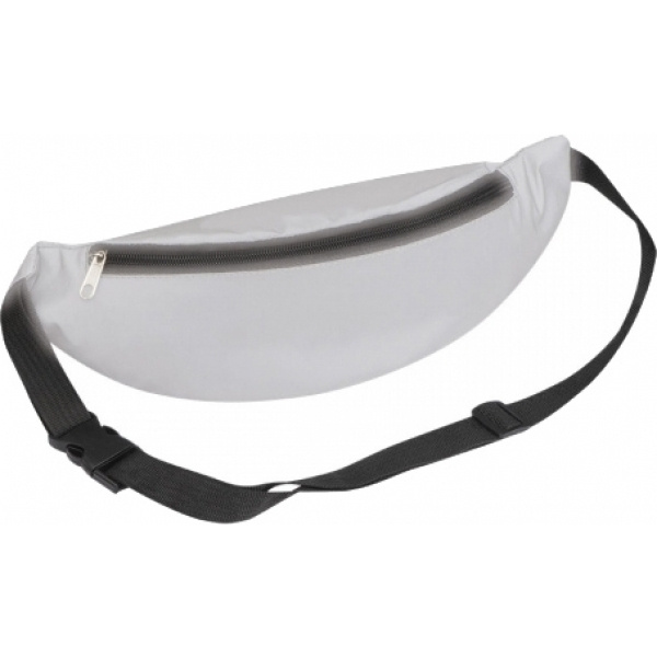 Polyesterista valmistettu heijastava vyölaukku, jossa säädettävä hihna ja iso lokero. Logosi painetaan pussiin.
