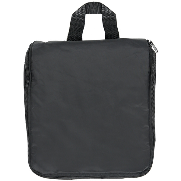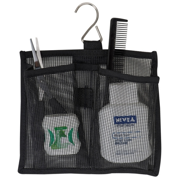 Meidän wc-pussisuositus! Tämä on oikea! Valmistettu tukevasta nailonista - sisäpuolella on runsaasti tilaa, läpinäkyvä vetoketjutasku, joustonauha 5 silmukalla, 3 isoa verkkolokeroa ja 2 verkkolokeroa metallikoukulla, jotka voit ottaa ulos tarrakiinnityksen avulla. roikkua suihkussa esim. shampoo tai suihkugeeli. Laukussa on 270 astetta kiertävä vetoketju ja yksi metallikoukku sen ripustamista varten. Tämä on käytännöllistä ja kätevää! Painamme logosi laukun etupuolelle.