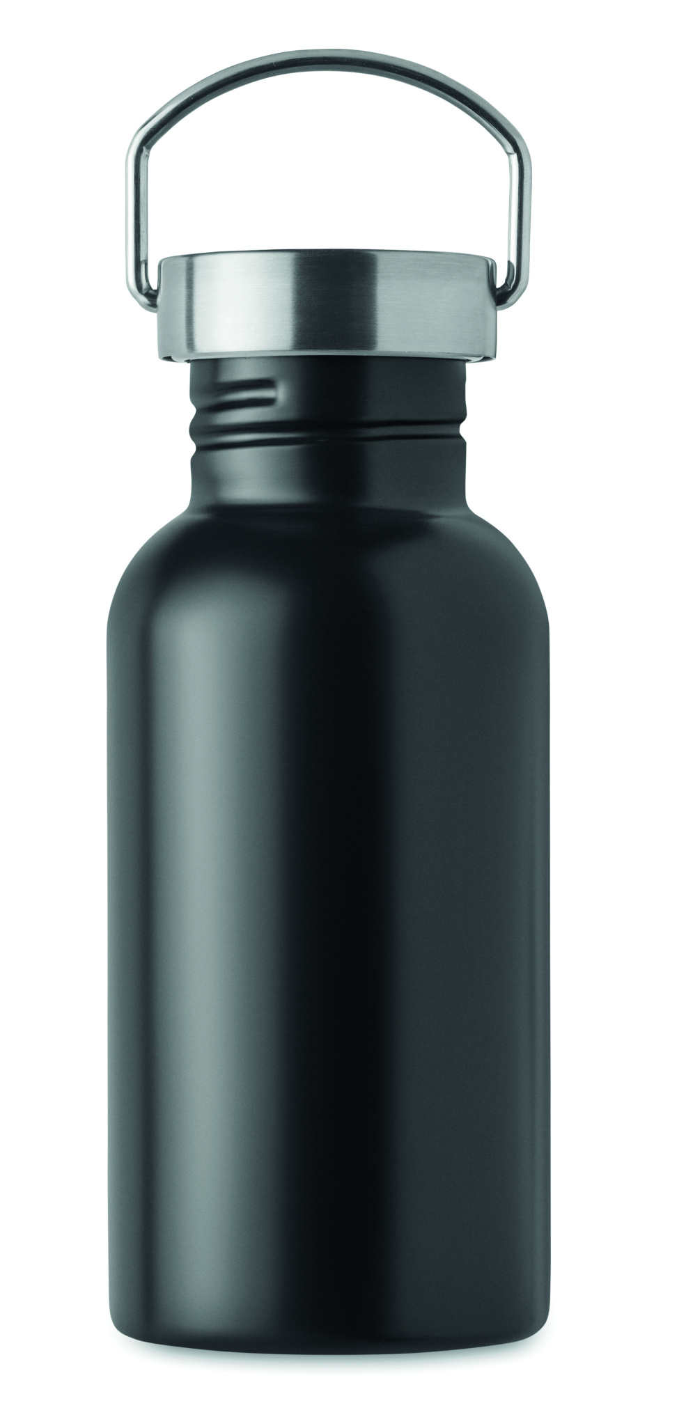 Yksiseinäinen pullo kierrätettyä ruostumatonta terästä (90 % kierrätettyä ruostumatonta terästä ja 10 % ruostumatonta terästä) kannella ja kahvalla. Vuotamaton. Tilavuus: 500 ml.