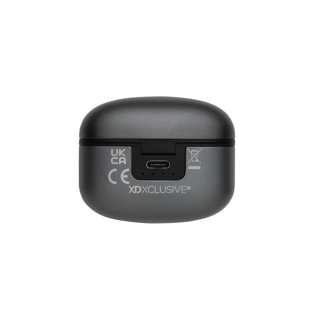 Belaidės ausinės su aiškiu garsu ir stipriais žemaisiais dažniais. Pagaminta iš RCS (Recycled Claim Standard) sertifikuoto perdirbto aliuminio ir ABS. Bendras perdirbtas turinys: 64% pagal bendrą prekės svorį. RCS sertifikatas užtikrina visiškai sertifikuotą perdirbtų medžiagų tiekimo grandinę. Perdirbimo procese aliuminis nepraranda savo savybių ir gali būti perdirbamas be galo. Įskaitant perdirbtą C tipo įkrovimo laidą, pagamintą iš RCS sertifikuoto perdirbto aliuminio, TPE ir PET. Ausinėse yra 40 mah talpos baterija, kuri leidžia žaisti iki 5 valandų, o per 300 mah įkrovimo dėklą jas galima visiškai įkrauti per 1,5 valandos. Su BT 5.3 sklandžiai prijungti iki 10 metrų. Supakuota į FSC® mišinio pakuotę. Prekė ir priedai 100% be PVC.