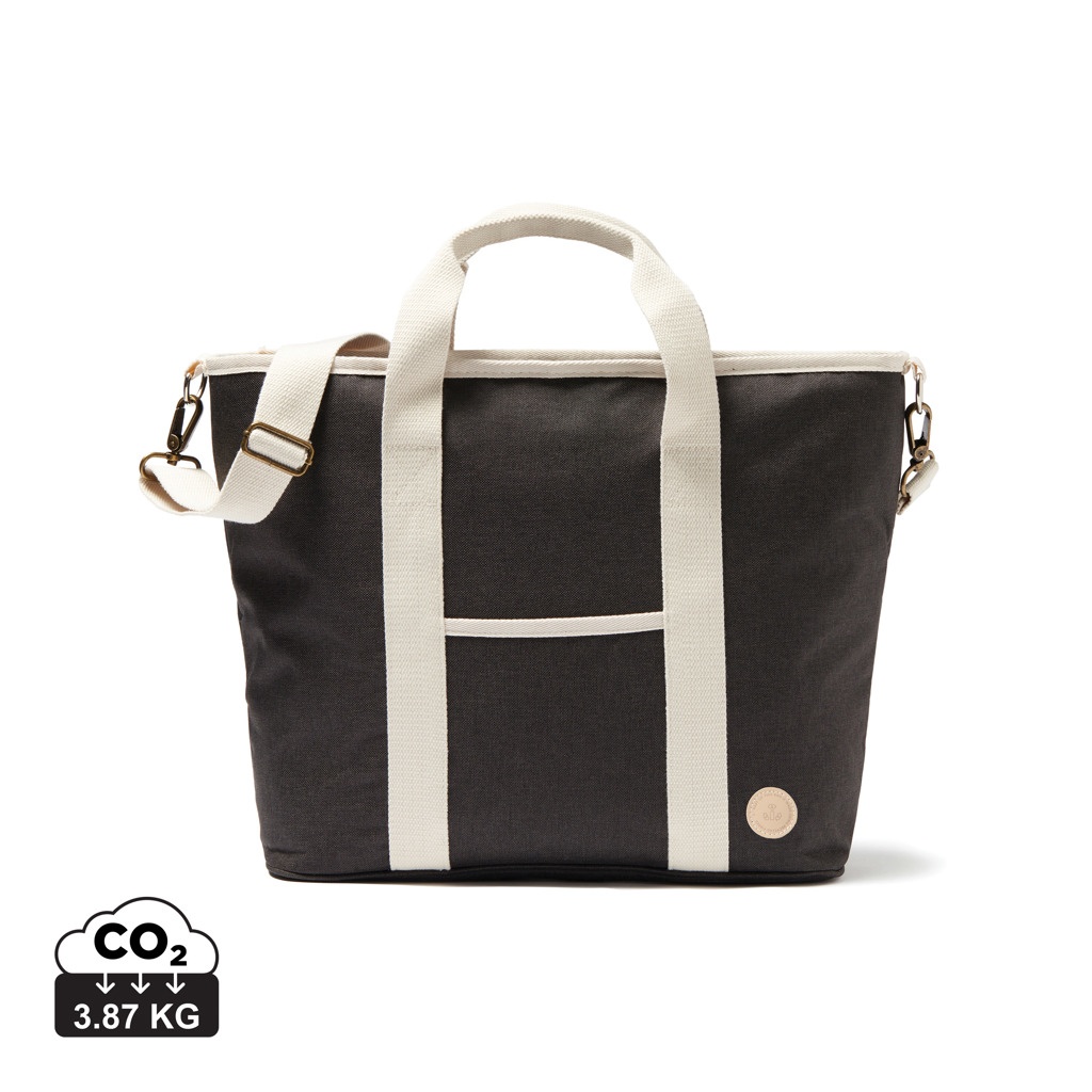 Tonas po tono margas šaltkrepšys su dirbtinės odos ir medvilnės detalėmis, kad būtų gražus kaip paprastas krepšys ir galėtumėte stilingai iškylauti. Šaldymo krepšio išorėje taip pat yra nedidelis skyrius, kuriame yra vietos ir kitiems daiktams. Storas PEVA paminkštinimas užtikrina, kad šaltis išliks ilgą laiką. Po naudojimo jį taip pat lengva valyti ir išdžiovinti. Su reguliuojamu peties dirželiu ir dviguba rankena galite neštis šaltkrepšį įvairiais būdais.