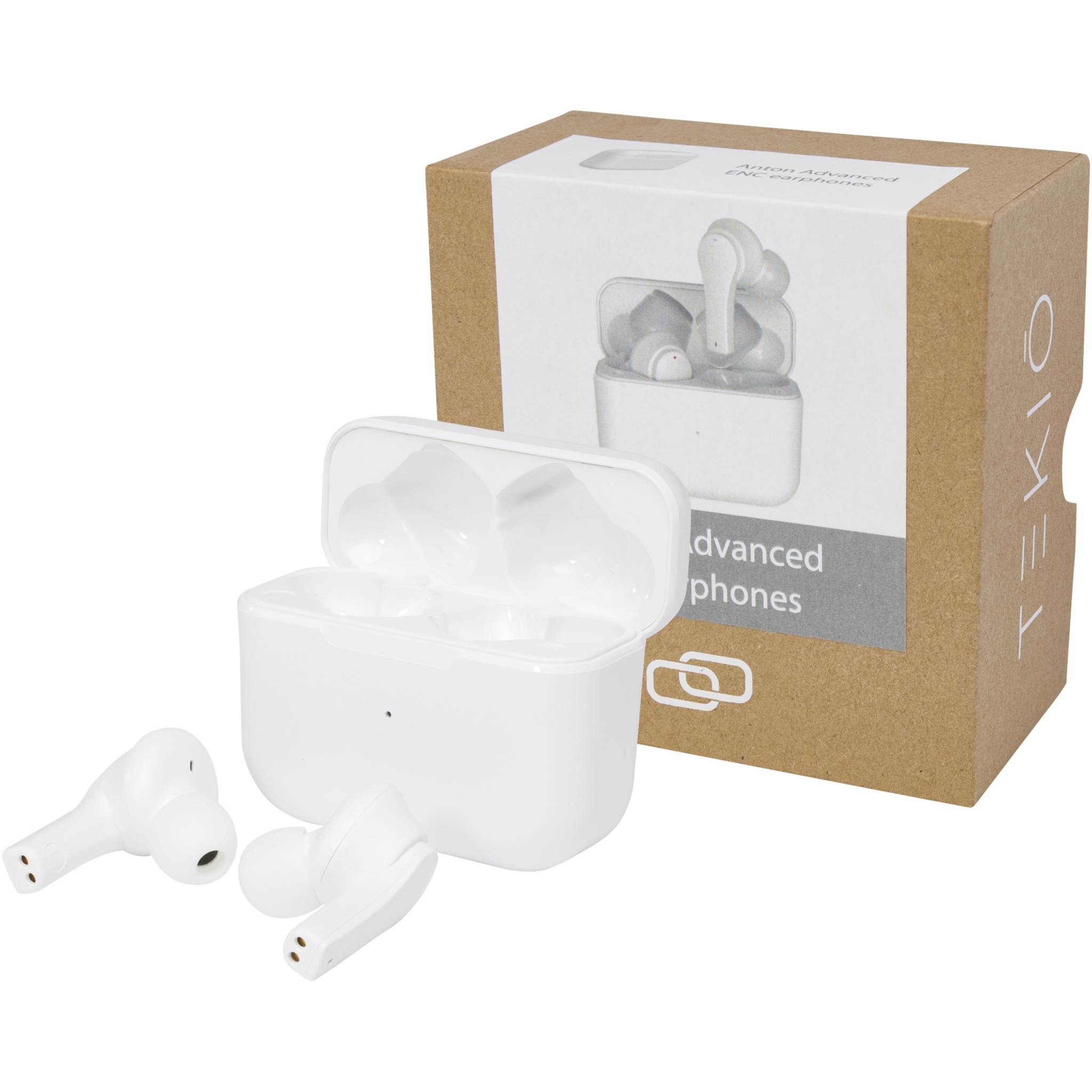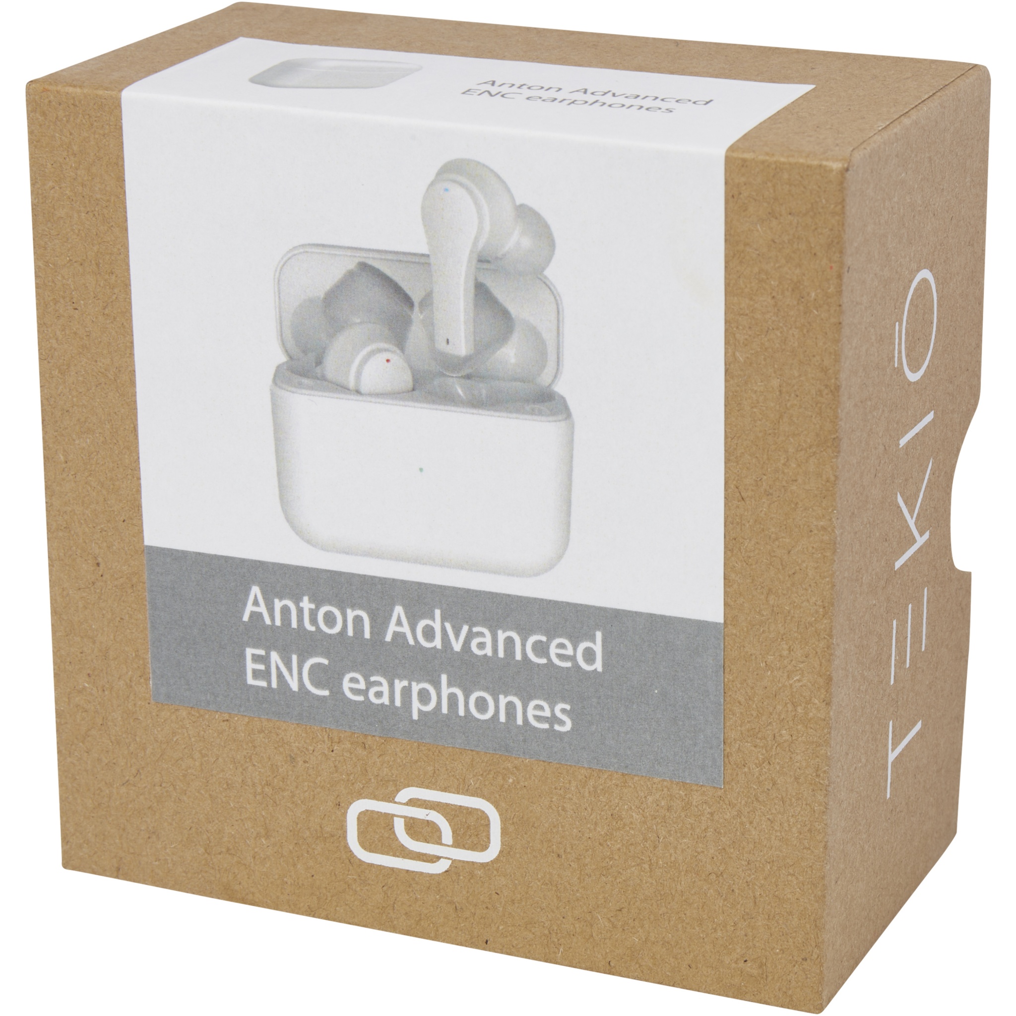 Anton Advanced ENC austiņas ir aprīkotas ar jaunākajām audio tehnoloģijām. Kad korpuss ir atvērts, austiņas ieslēgsies un automātiski sinhronizēsies viena ar otru. Korpuss darbojas arī kā austiņu barošanas bloks, un to var uzlādēt, izmantojot komplektācijā iekļauto C tipa kabeli. Kad korpusa 400 mAh akumulators ir uzlādēts, tas uzlādēs austiņas 4 reizes no 0 līdz 100%. Vairāk nekā 4,5 stundu atskaņošanas laika maksimālajā skaļumā ar vienu uzlādi, tie ir obligāti nepieciešami ikvienam ceļotājam vai spēlētājam. Izmantojot iebūvēto vides trokšņu slāpēšanu (ENC), austiņas bloķē apkārtējās skaņas un uztver tikai jūsu balsi, kad tās izmanto zvaniem vai videospēlēm, tādējādi otrai personai ir viegli jūs dzirdēt. Austiņām ir iebūvētas mūzikas vadības ierīces un divi mikrofoni brīvroku lietošanai. Pilnīga austiņu uzlāde aizņem 1,5 stundu, un maciņu var uzlādēt mazāk nekā 2 stundu laikā. Spēļu režīms: zems latentums 70-75 ms. Piegādāts mūsu augstākās kvalitātes Tekiō kraftpapīra kastē ar krāsainu uzlīmi.