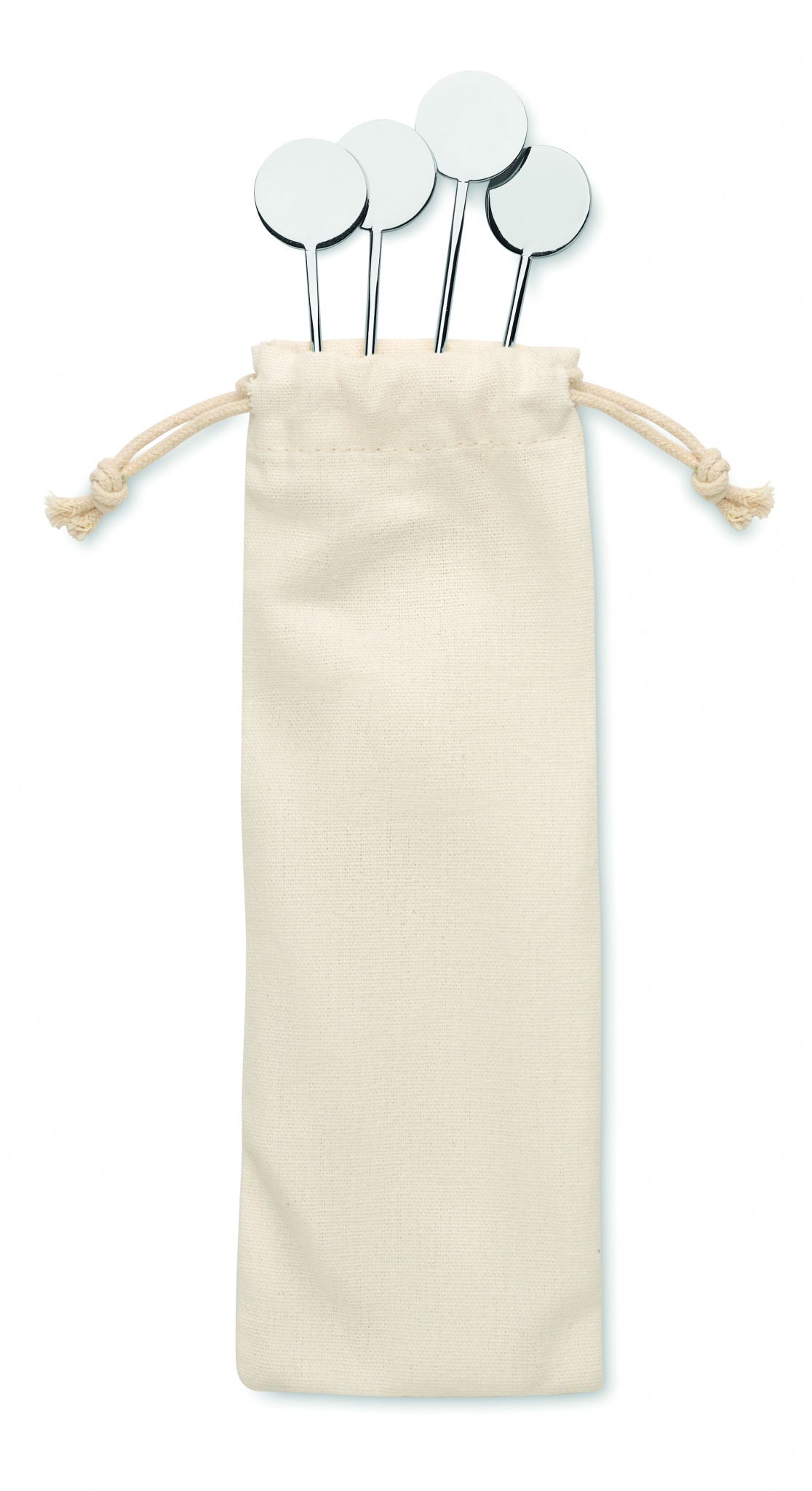 4 nerūsējošā tērauda dzērienu maisītāju komplekts kokvilnas auklas maisiņā.