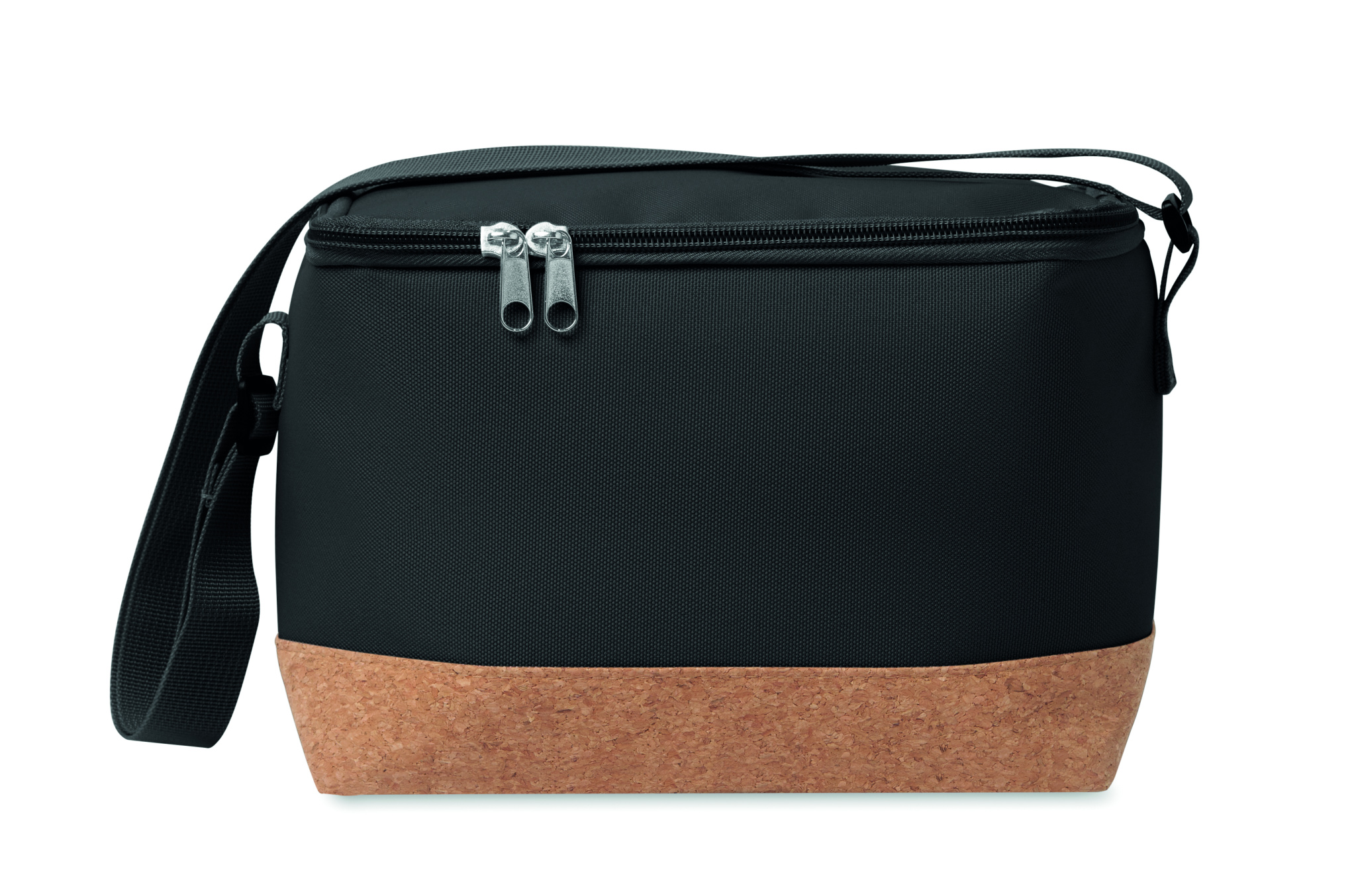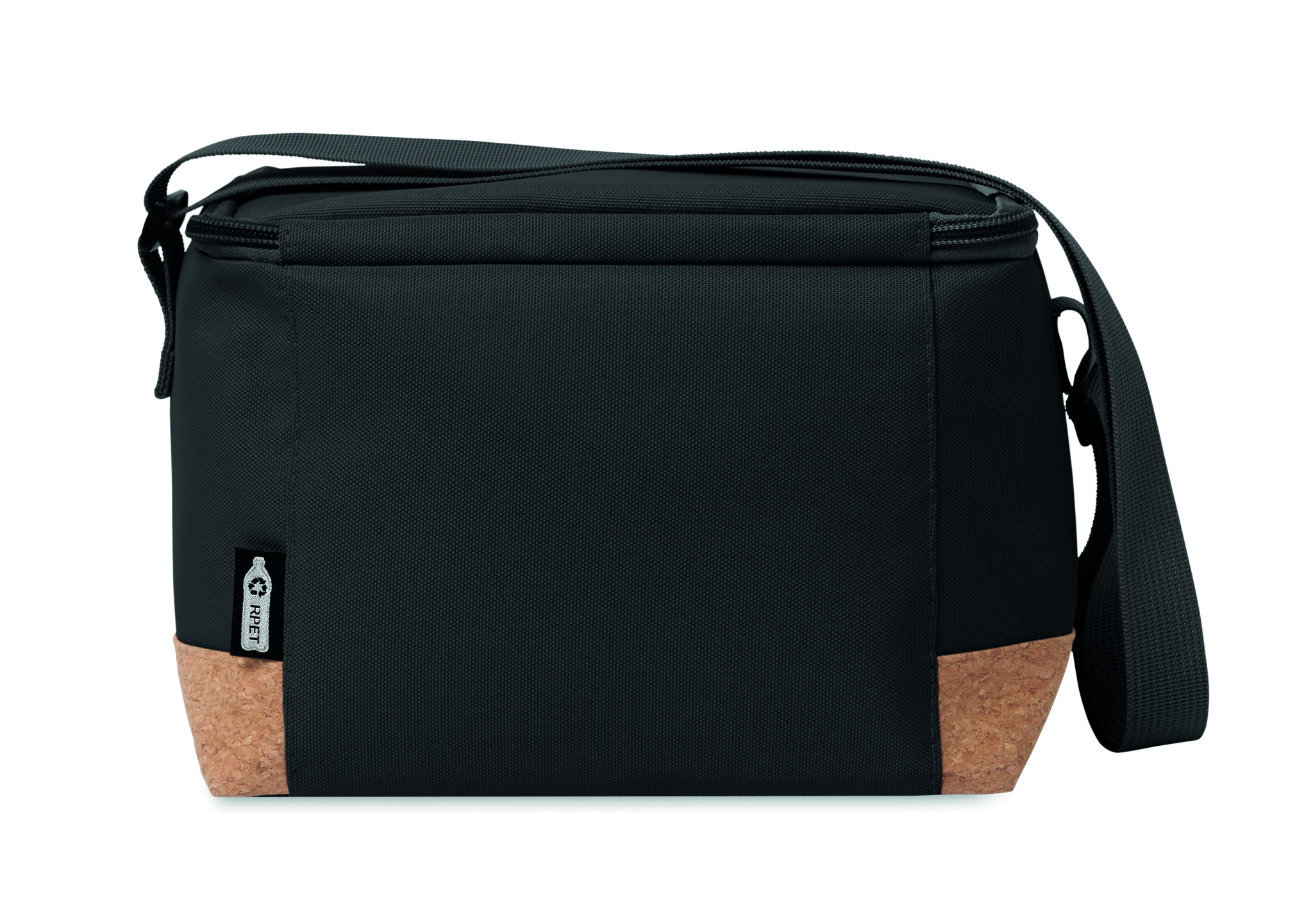 RPET 600D cooler bag with cork base detail. PEVA with 2mm PE foam. Capacity 5L.
