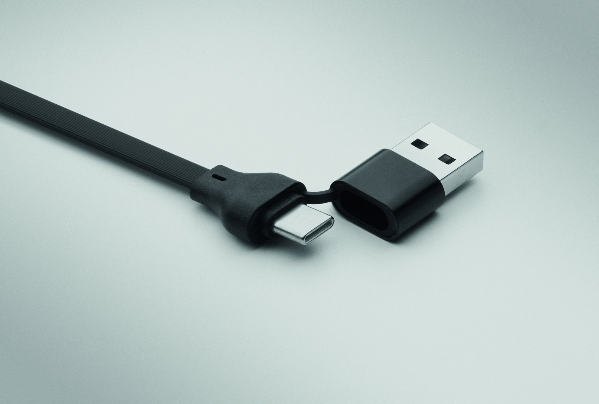 60W cable in recycled ABS casing with keyring and phone stand. Input: 2-in-1 Type-C and Type-A. Output: Type-C and micro-B (2 in 1 pin). Cable length: 26 cm.
