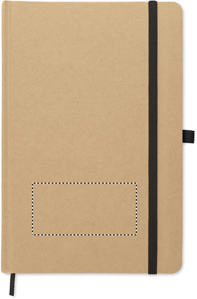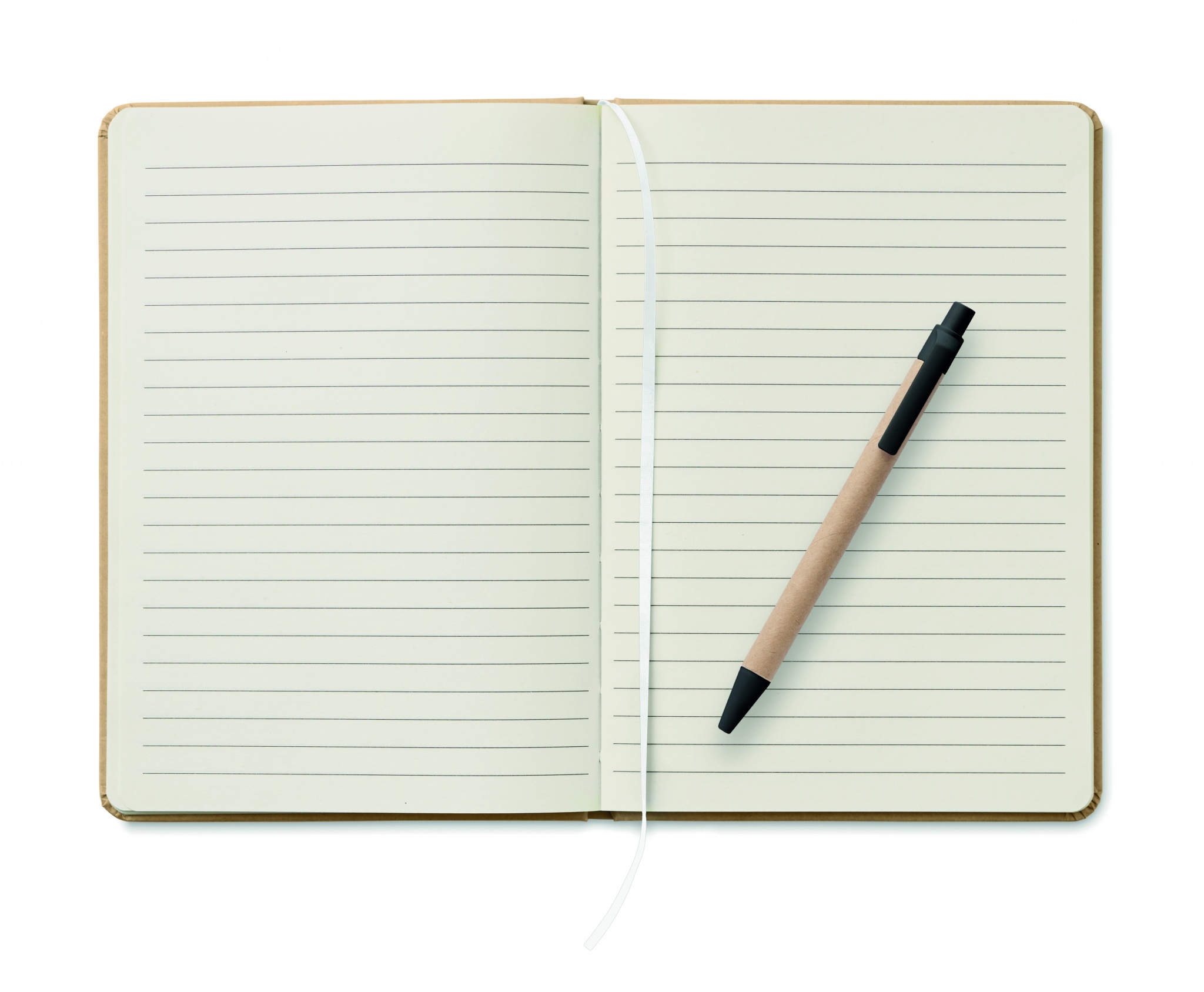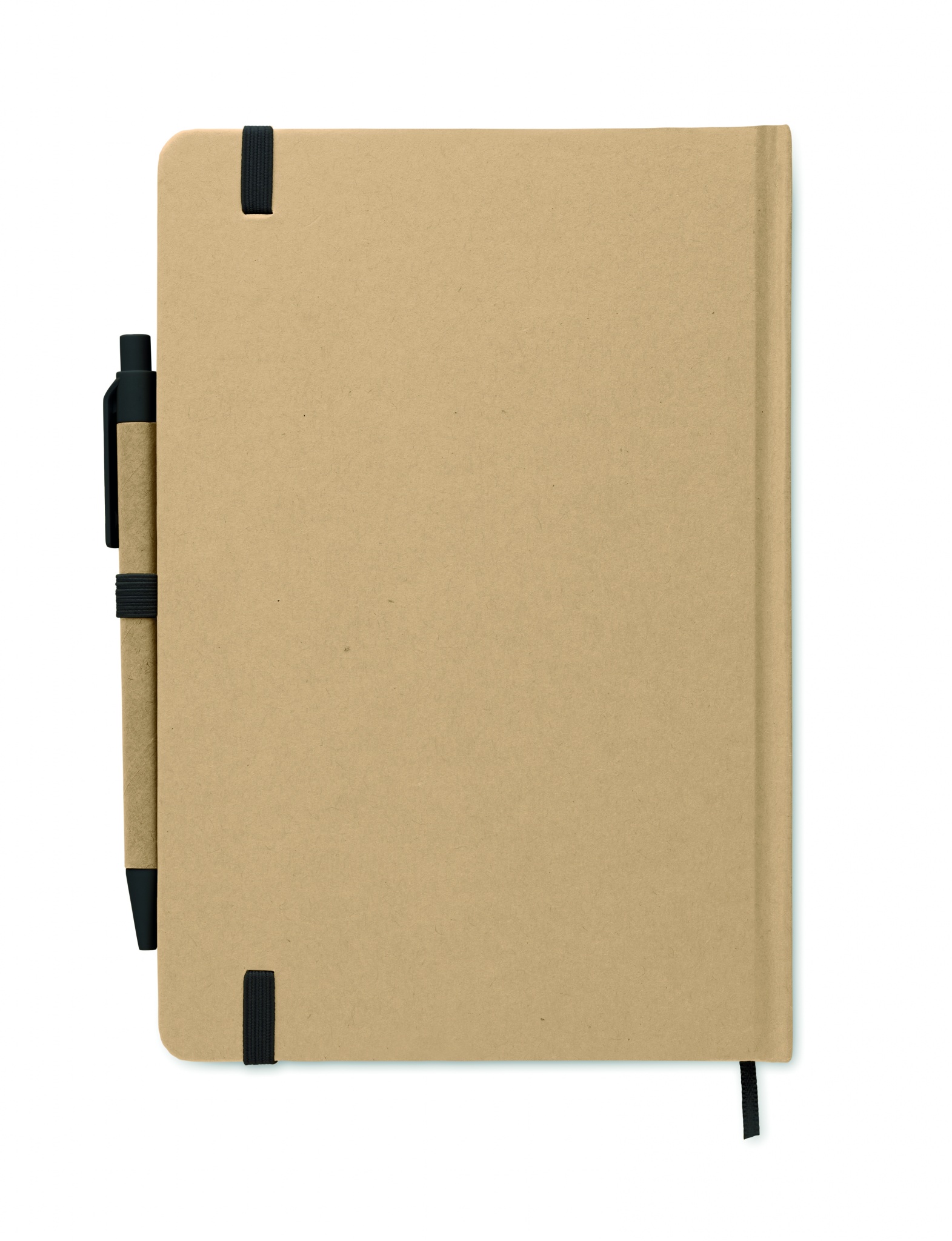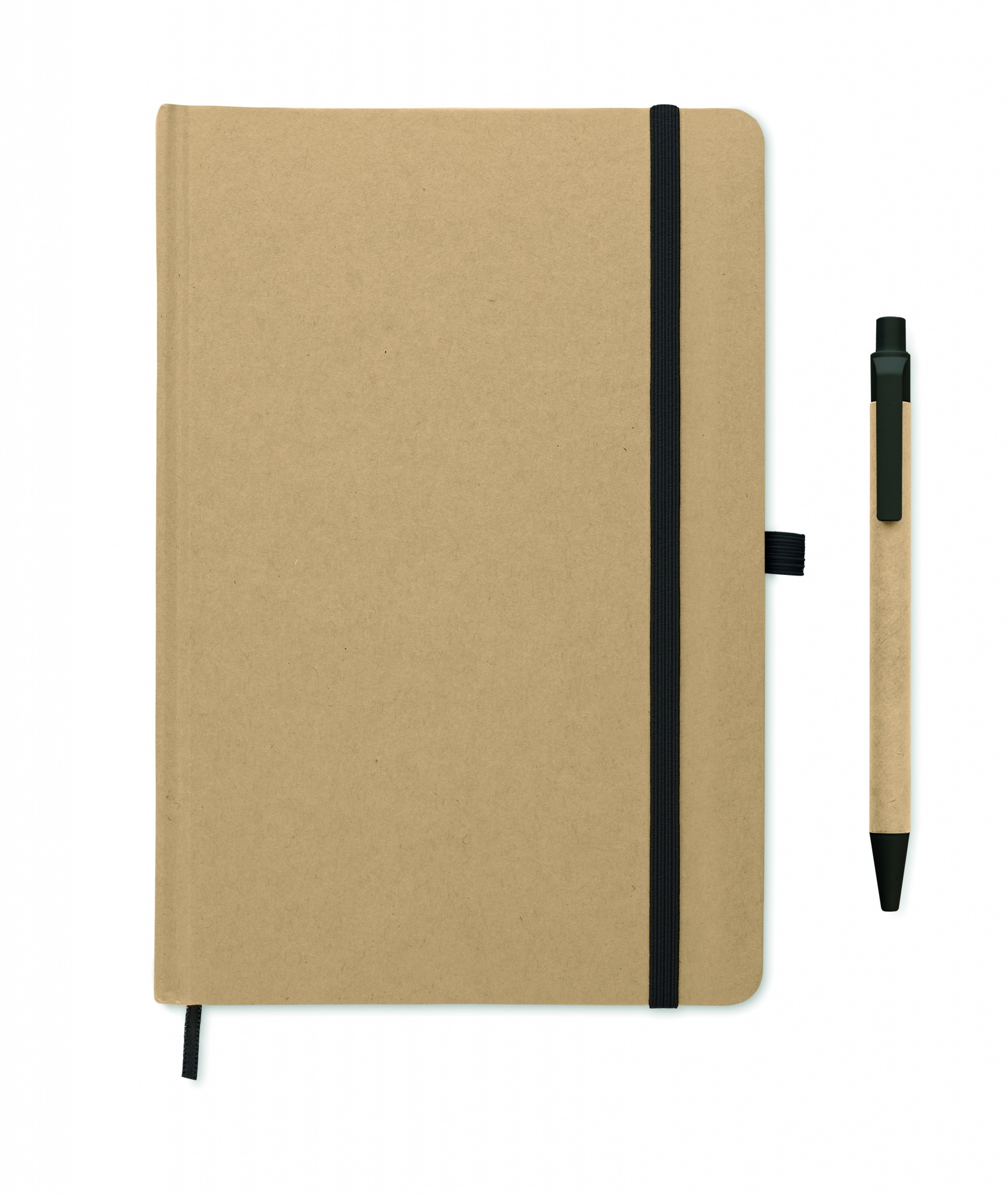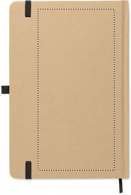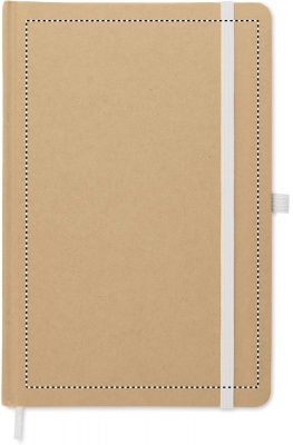 Блокнот формата А5 в твердой обложке из переработанного картона. В переплете. 160 линованных страниц (80 листов из переработанной бумаги). В комплект входит кнопочная шариковая ручка из переработанной бумаги. Синие чернила.