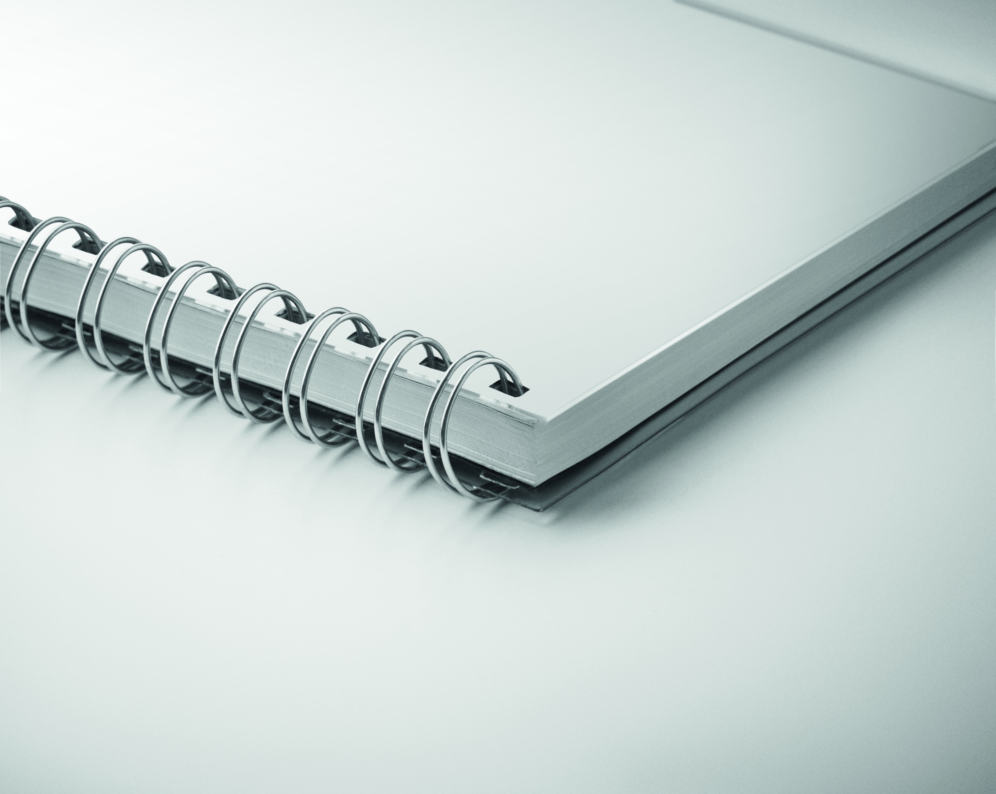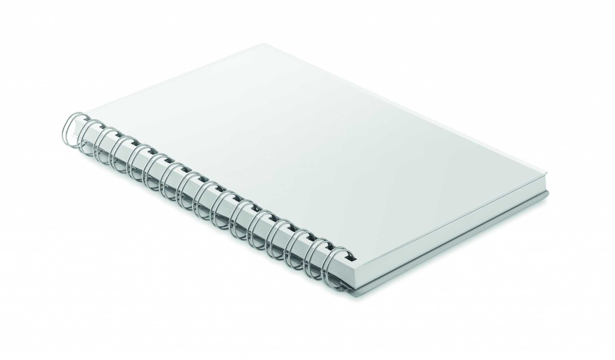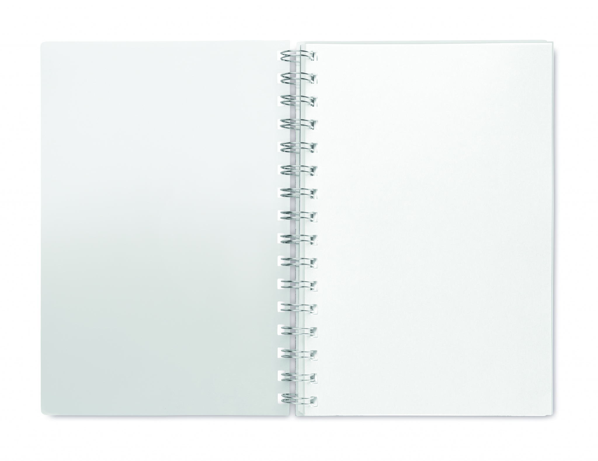 Блокнот формата A5 на спирали в обложке из переработанного пластика (RPET). 80 линованных страниц.