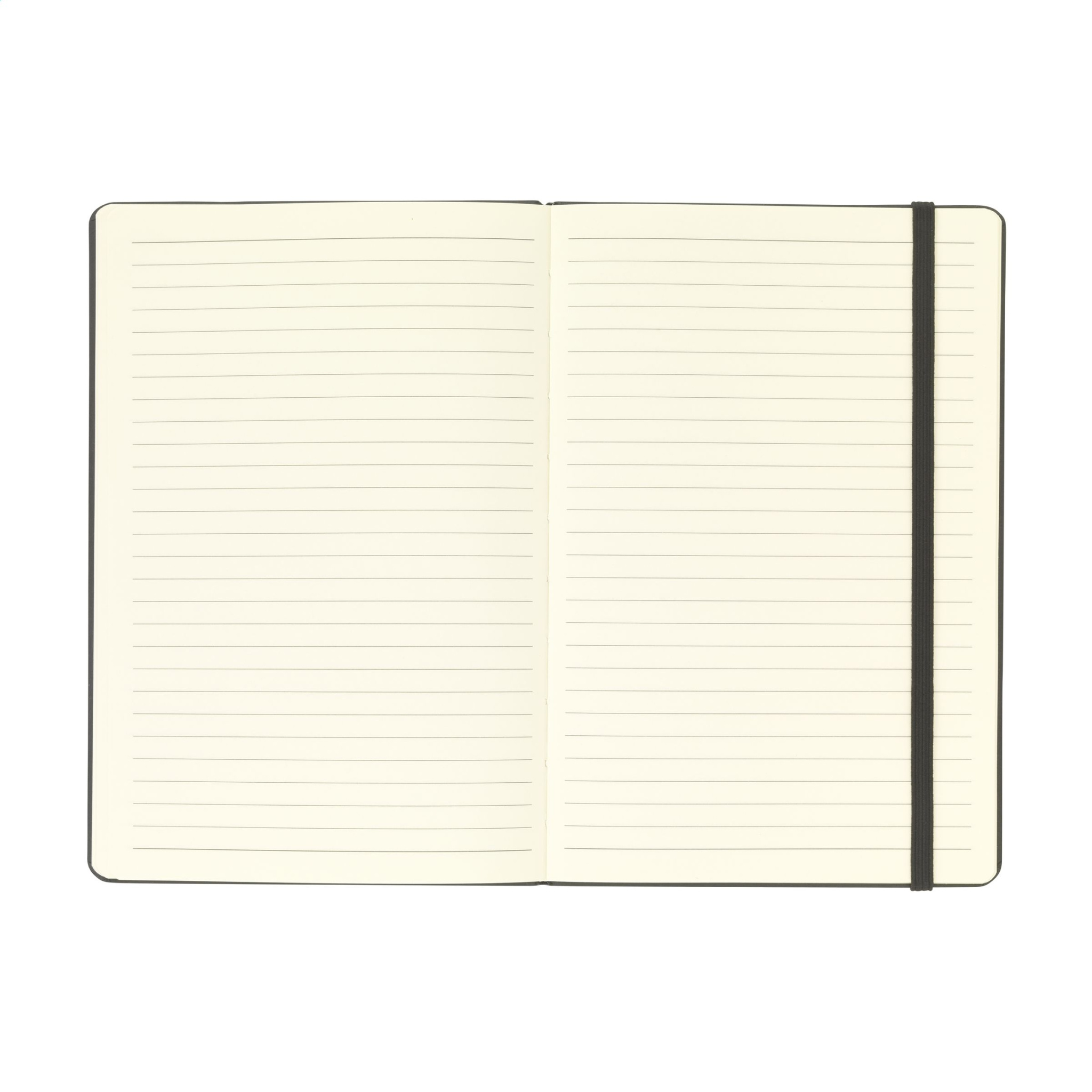 WoW! Блокнот формата A5 с обложкой из картона, сертифицированного FSC®. В блокноте примерно 80 листов/160 страниц кремовой линованной бумаги, сертифицированной FSC Mix (70 г/м²). С завязкой и удобной застежкой-резинкой.