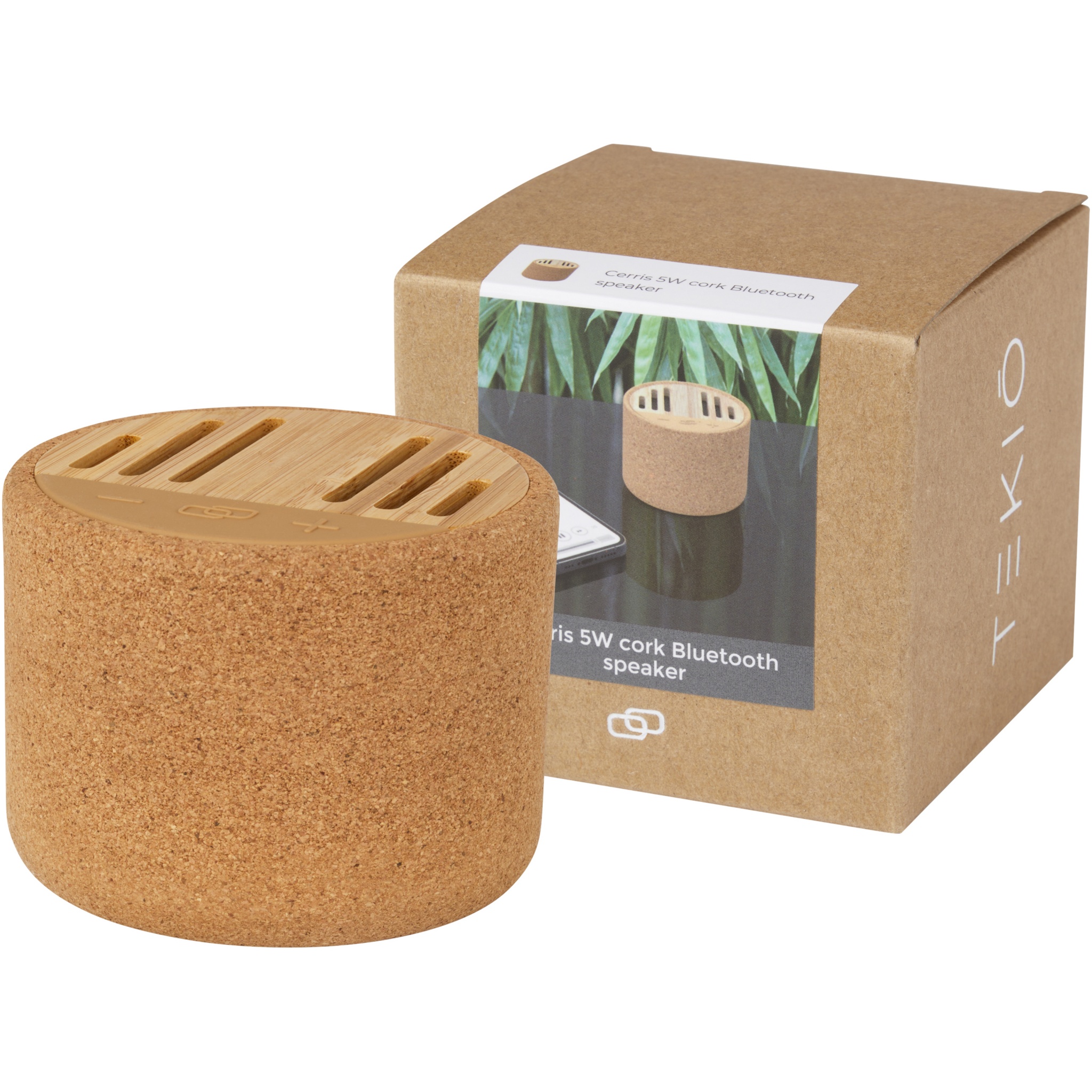 Bluetooth®-колонка Cerris мощностью 5 Вт, изготовленная из пробкового дуба и бамбука, — это натуральное музыкальное сокровище! Корпус и решетка колонки изготовлены из настоящего пробкового дуба и бамбука. Благодаря выходной мощности 5 Вт эта компактная колонка обеспечивает отличное качество звука и даже позволяет отвечать на звонки при воспроизведении музыки с телефона. Встроенный аккумулятор емкостью 900 мАч позволяет использовать устройство до 3 часов при максимальной громкости без подзарядки. Время зарядки от 0 до 100% составляет 2 часа. Bluetooth® версии 5.1 с радиусом действия до 10 метров. В комплект входит кабель для зарядки Type-C длиной 30 см. Поставляется в премиальной коробке из крафт-бумаги с красочной наклейкой. Поскольку бамбук и пробковый дуб — природные материалы, цвет и размер изделия могут быть разными, что, в свою очередь, может повлиять на итоговый вид печати.