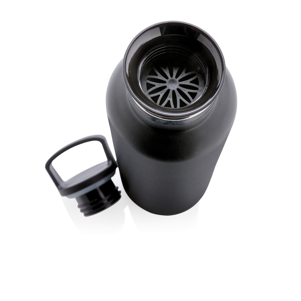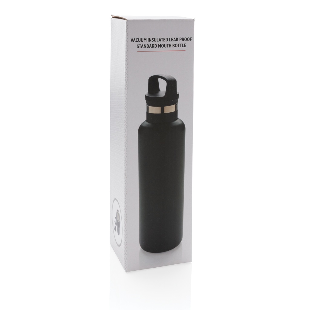 Бутылка со стандартным горлом и вакуумной изоляцией, герметичная, черный