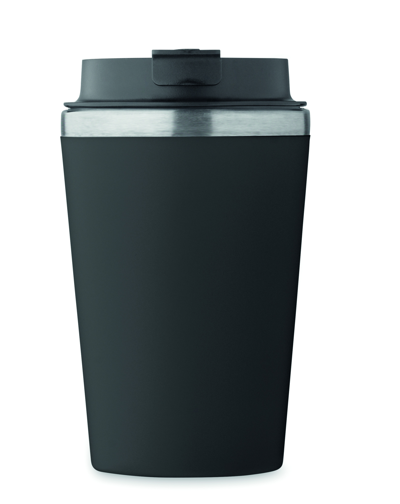 Double wall tumbler in PP outer wall with inner wall in recycled stainless steel (90% recycled stainless steel and 10% stainless steel) with a ceramic inner lining. Leak-free. Capacity: 350 ml.