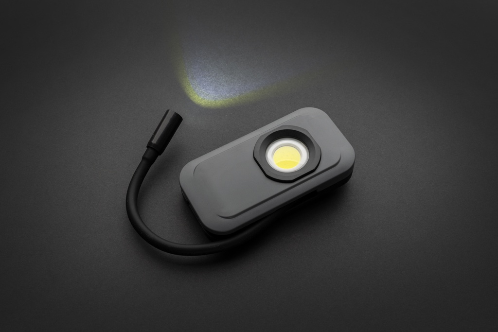 Переработанный АБС-пластик, сертифицированный RCS. Общее содержание переработанных материалов: 36% от общего веса изделия. Сертификация RCS гарантирует полностью сертифицированную цепочку поставок переработанных материалов. В рабочем фонаре используется перезаряжаемая литиевая батарея класса А емкостью 1000 мАч, поэтому нет необходимости заменять батареи. Просто подзаряжайте через разъем USB. Рабочий фонарь оснащен COB-светильником на 260 люмен и выдвижным светодиодным светом на 80 люмен. С 3 режимами: светодиодный, COB и COB 50%. С магнитом на задней панели. С портом типа C для подзарядки. Время работы на одной зарядке: 3 часа.