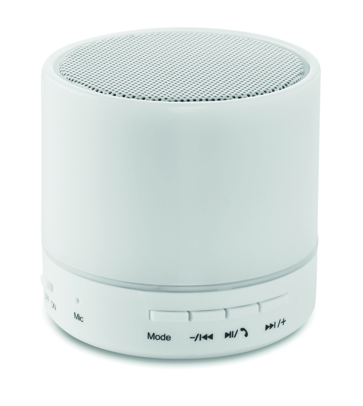 Колонка беспроводная круглой формы, переливающаяся 3 цветами. Есть функция хэндс фри ответа на звонок. Имеется разъем для SD карты и AUX/USB кабель. Работает от литий- ионного аккумулятора 450 мАч (включен).
