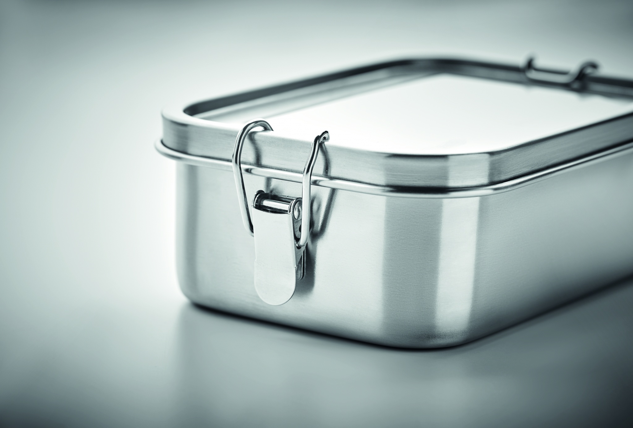 Ланч-бокс из нержавеющей стали с прочными боковыми застежками, обеспечивающими герметичность. Емкость 750 мл.