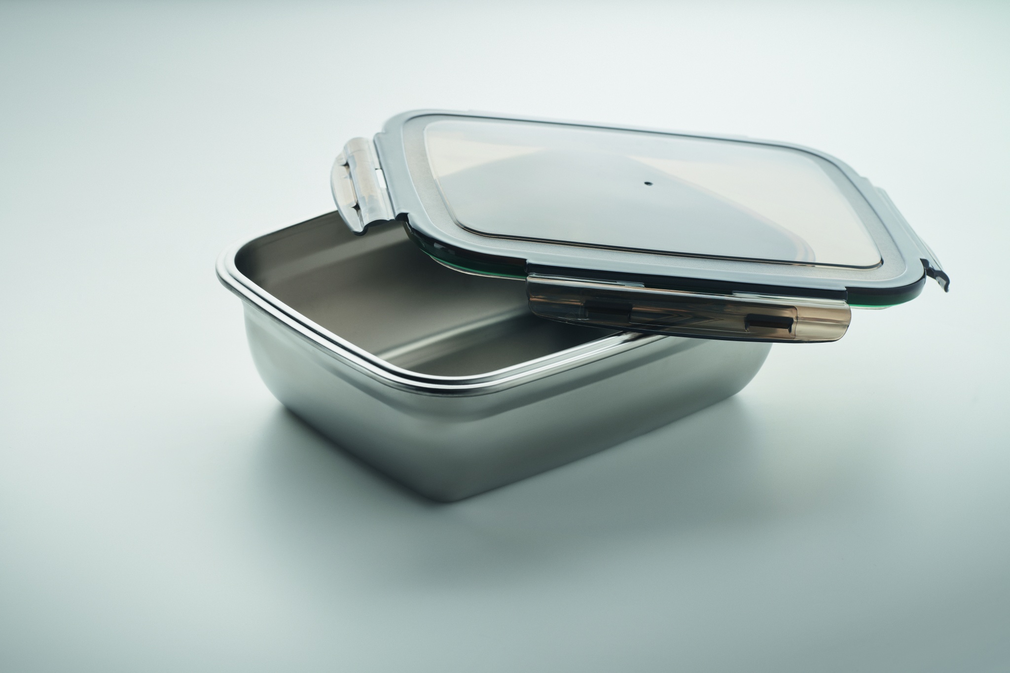 Ланчбокс из переработанной нержавеющей стали с крышкой из переработанного полипропилена и 4-сторонней застежкой. Включая разделитель. Вместимость: 1500 мл.