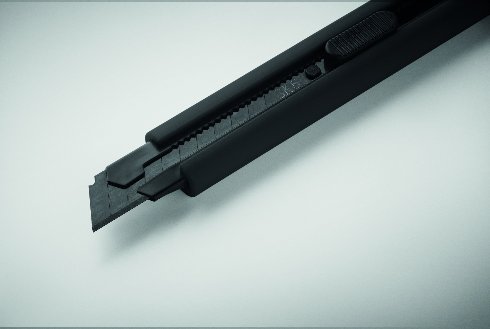 Retractable knife with ABS casing and carbon steel blade. Includes two extra replacement blades for extended use.