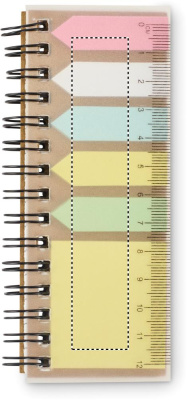 Memo pad in PP with sticky notes and 5 assorted colour page markers in recycled paper. Ring binder.
