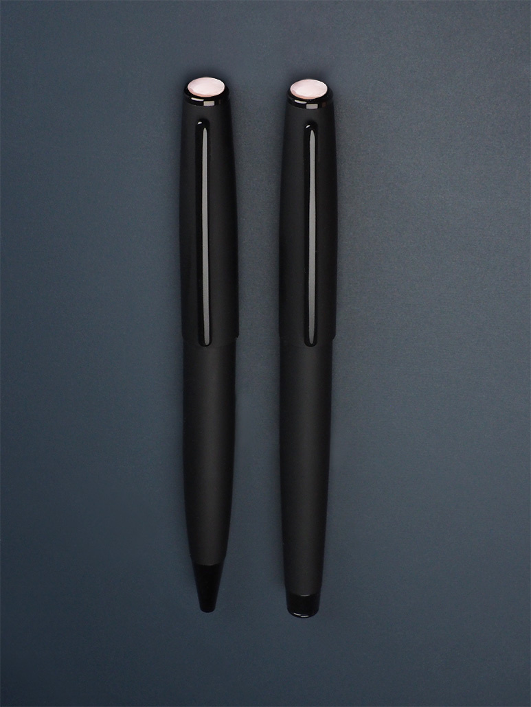 С шариковой ручкой и чернильной ручкой-роллером
