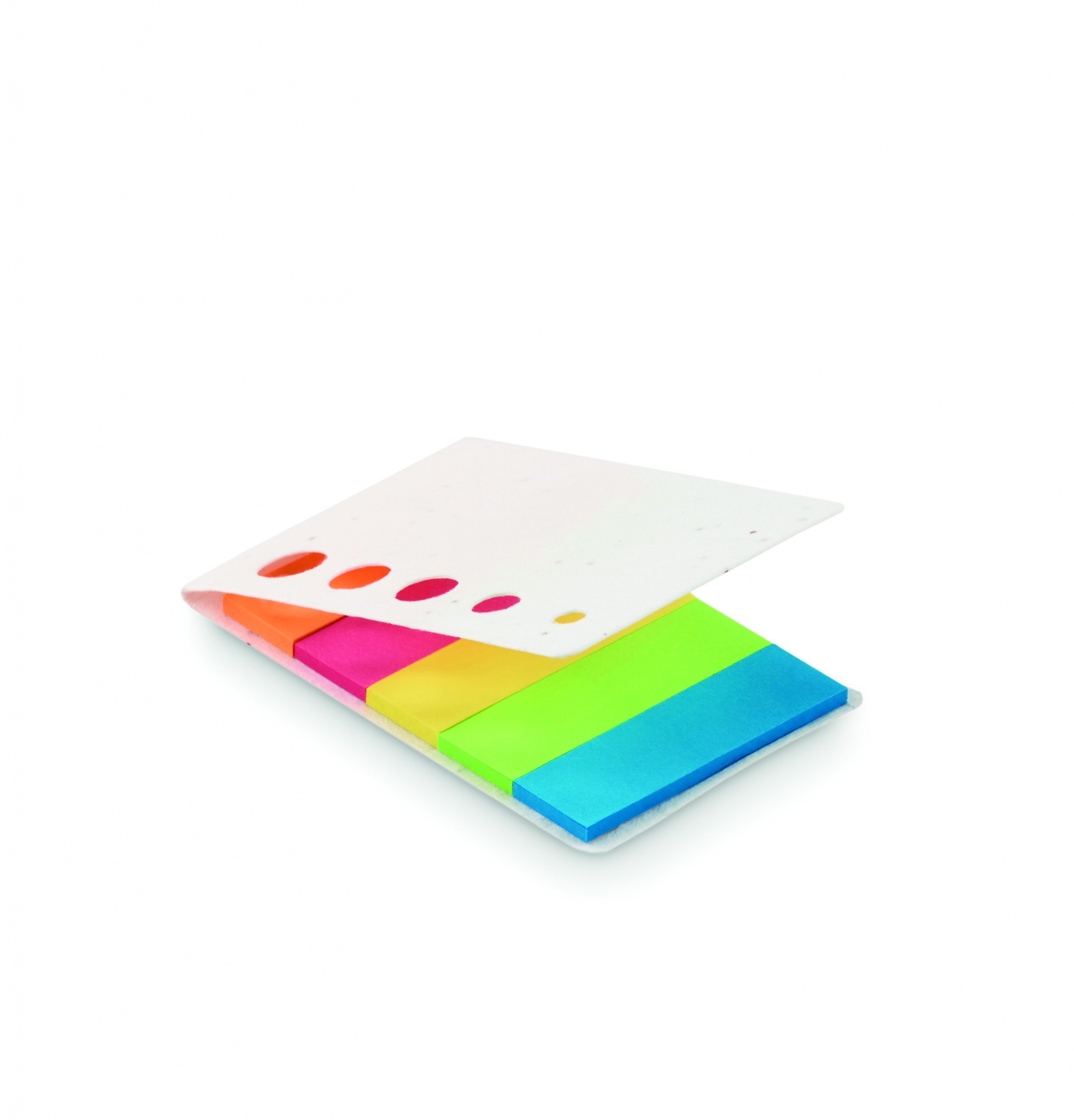 Набор стикеров в 5 разных цветах из бумаги содержащей семена белой ромашки. Поместите фрагменты бумаги в почву, чтобы вырастить цветок