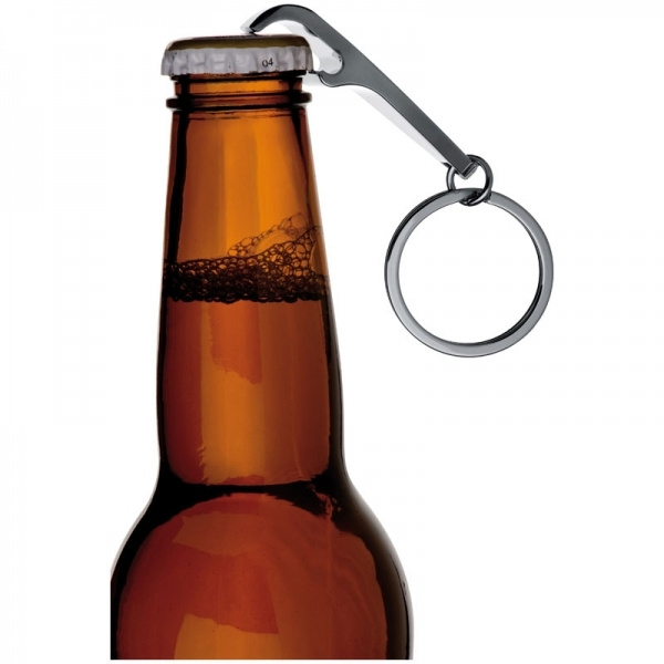 Открывалка для бутылок из хромированного металла с брелком. Наносим ваш логотип методом гравировки.