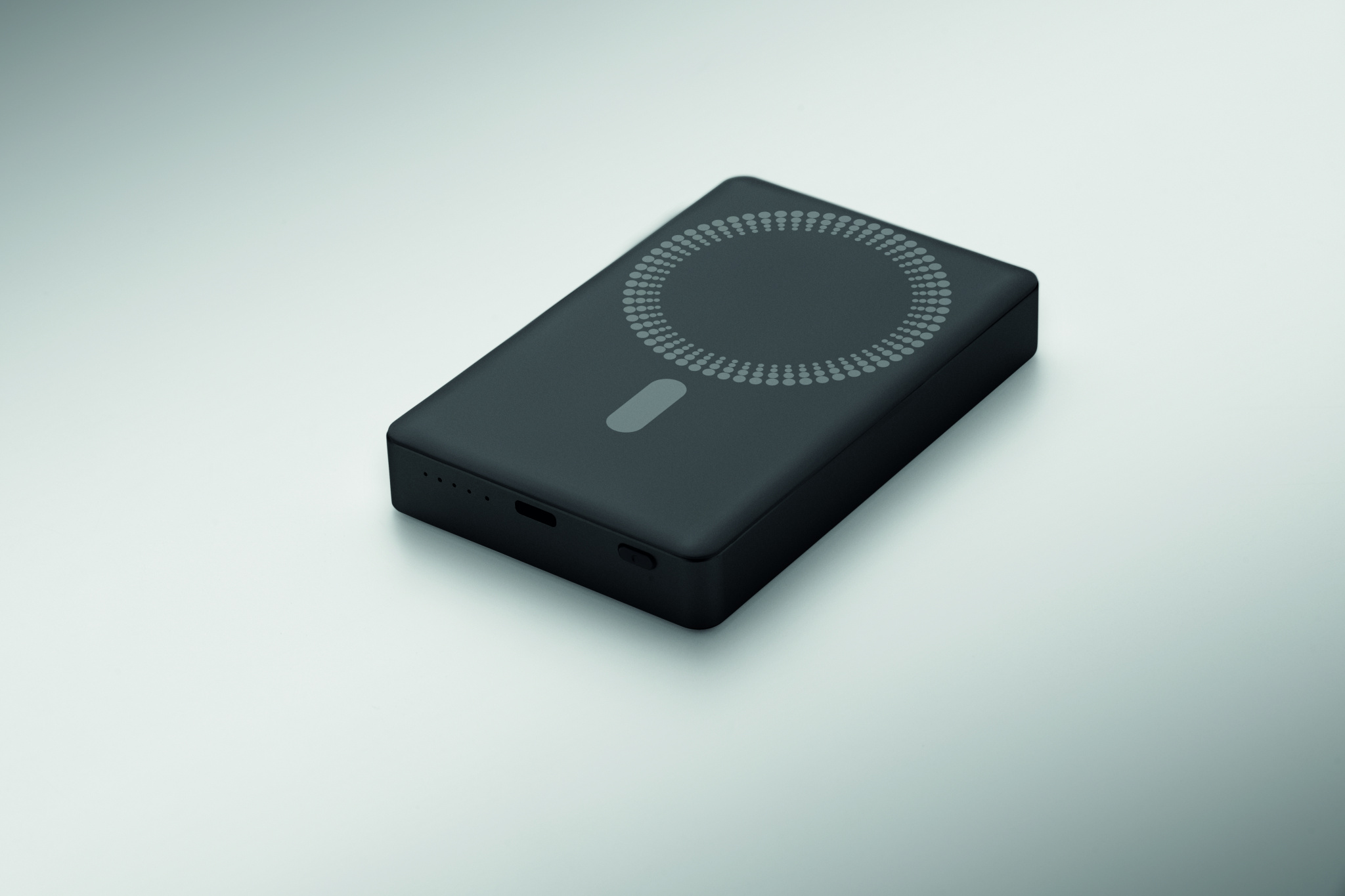 10000mAh power bank in recycled aluminium with indicator light. Features 15W magnetic wireless charging and 20W PD wired charging for fast and efficient power delivery.
