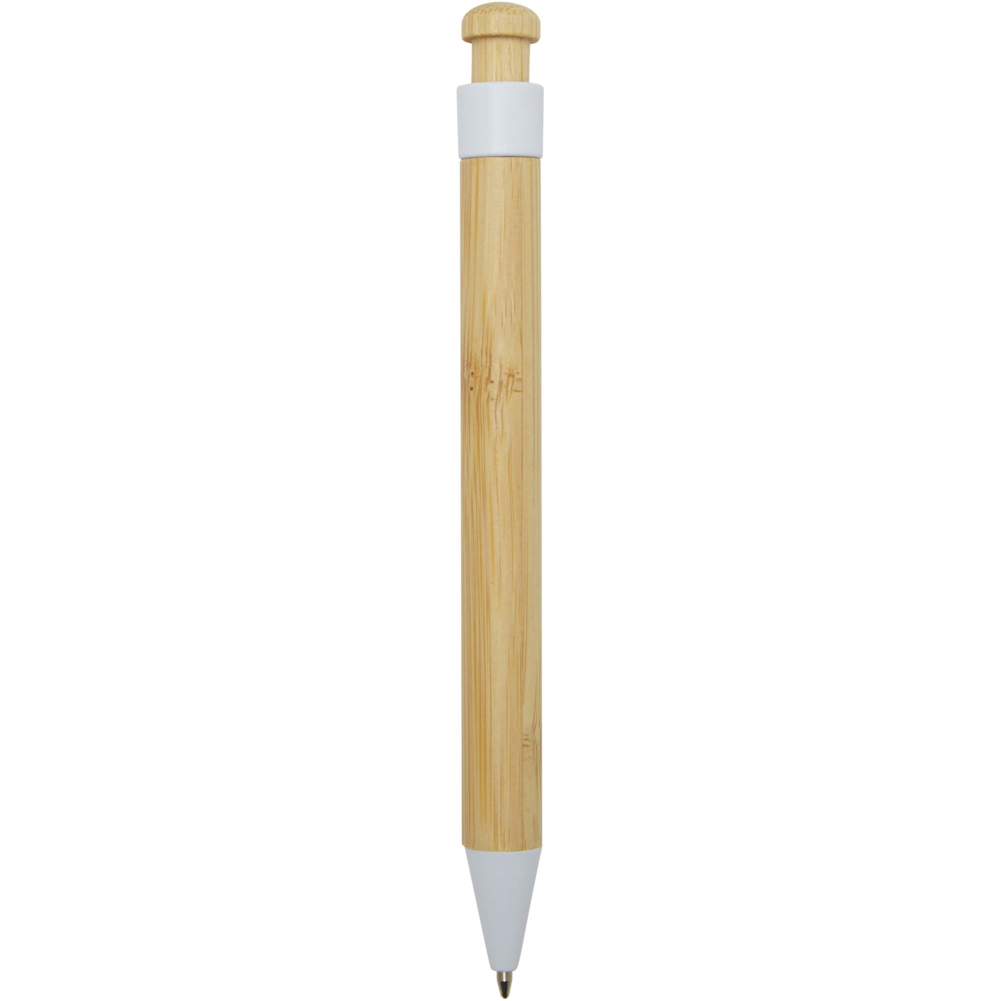 Шариковая ручка с зажимом и наконечником из переработанного пластика, а кнопка и корпус изготовлены из бамбука. Цвет чернил: черный. Длина непрерывной линии: 1000 метров. Размер пера: 1,0 мм.