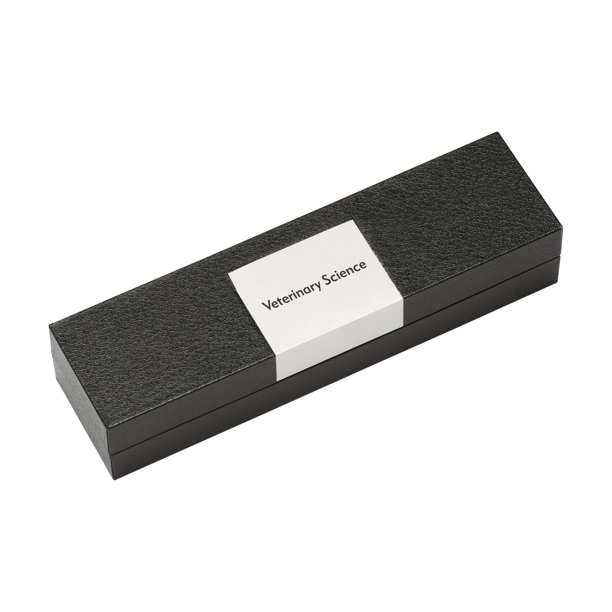 Голубые чернила, глянцевая шариковая ручка с поворотным механизмом и металлическим зажимом/верхушкой, наконечником и кольцом корпуса. В футляре.