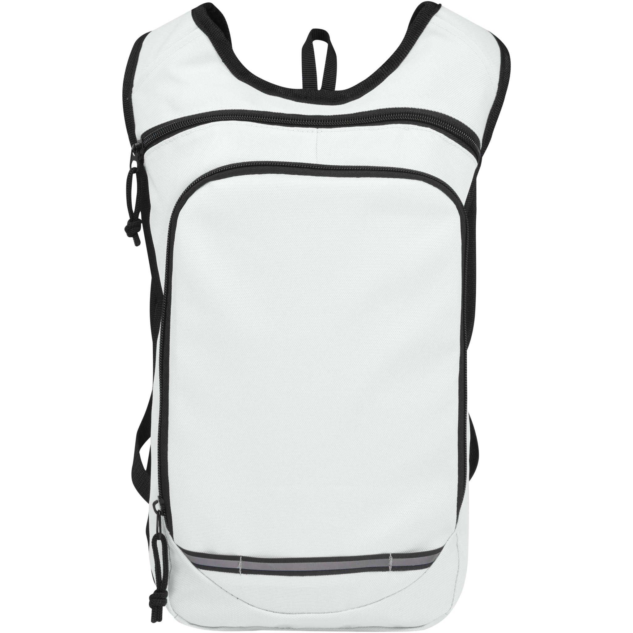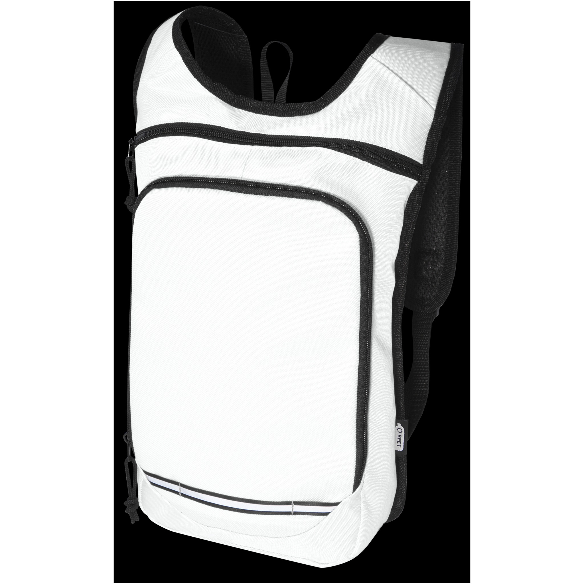 Рюкзак Trails изготовлен из 100% переработанной по стандарту GRS водоотталкивающей ткани и имеет один передний карман на молнии и одно основное отделение на молнии, а также отделение для гидросистемы. Светоотражающие полосы для видимости и сетчатая задняя часть для комфорта при переноске делает его отличным экологичным выбором для активного отдыха.