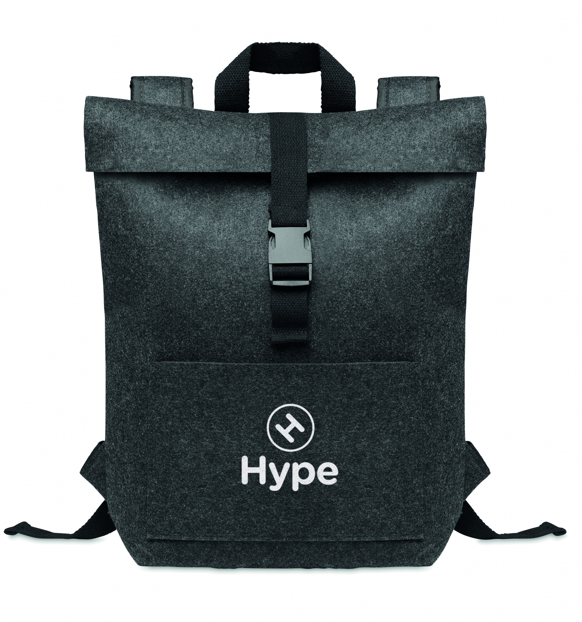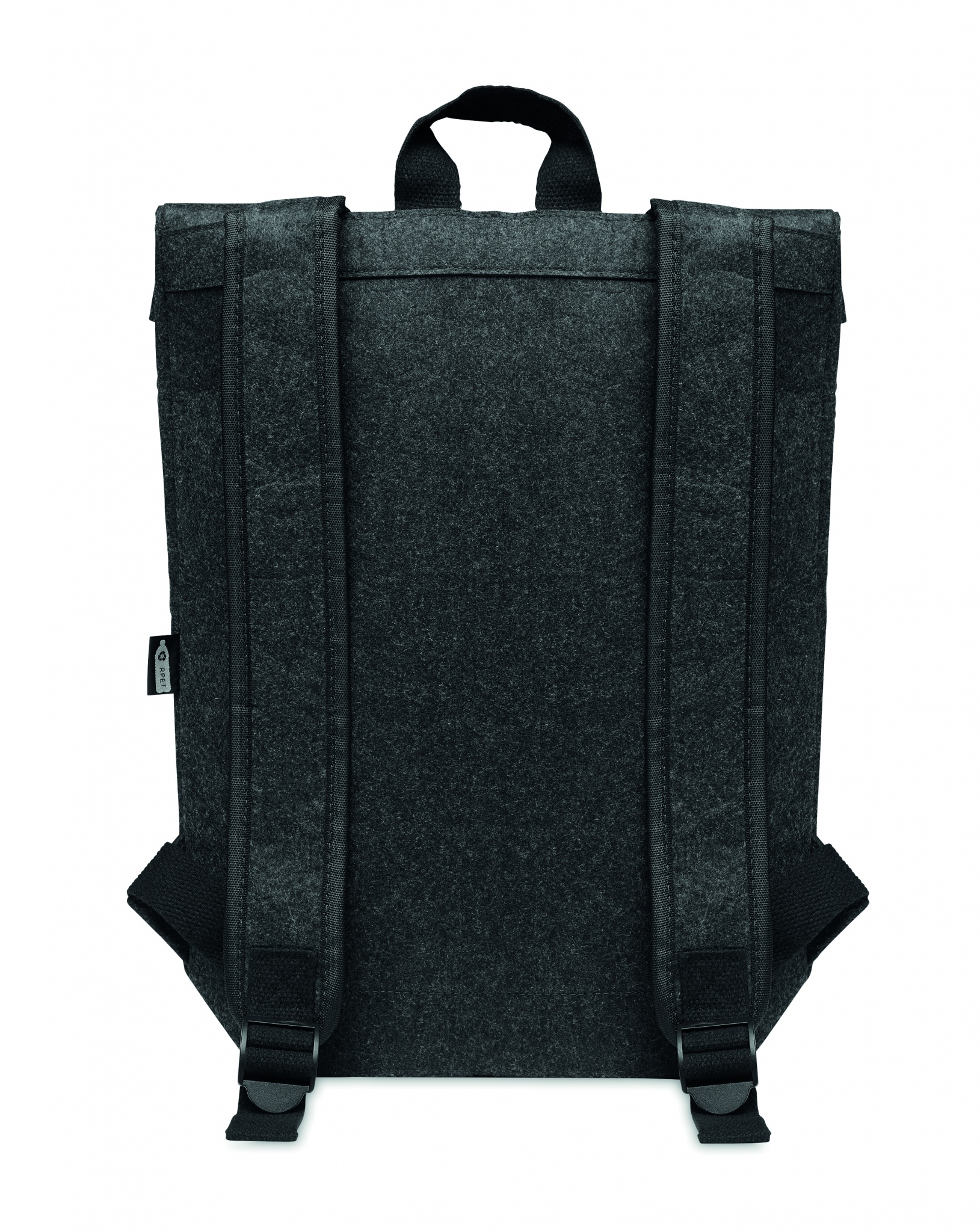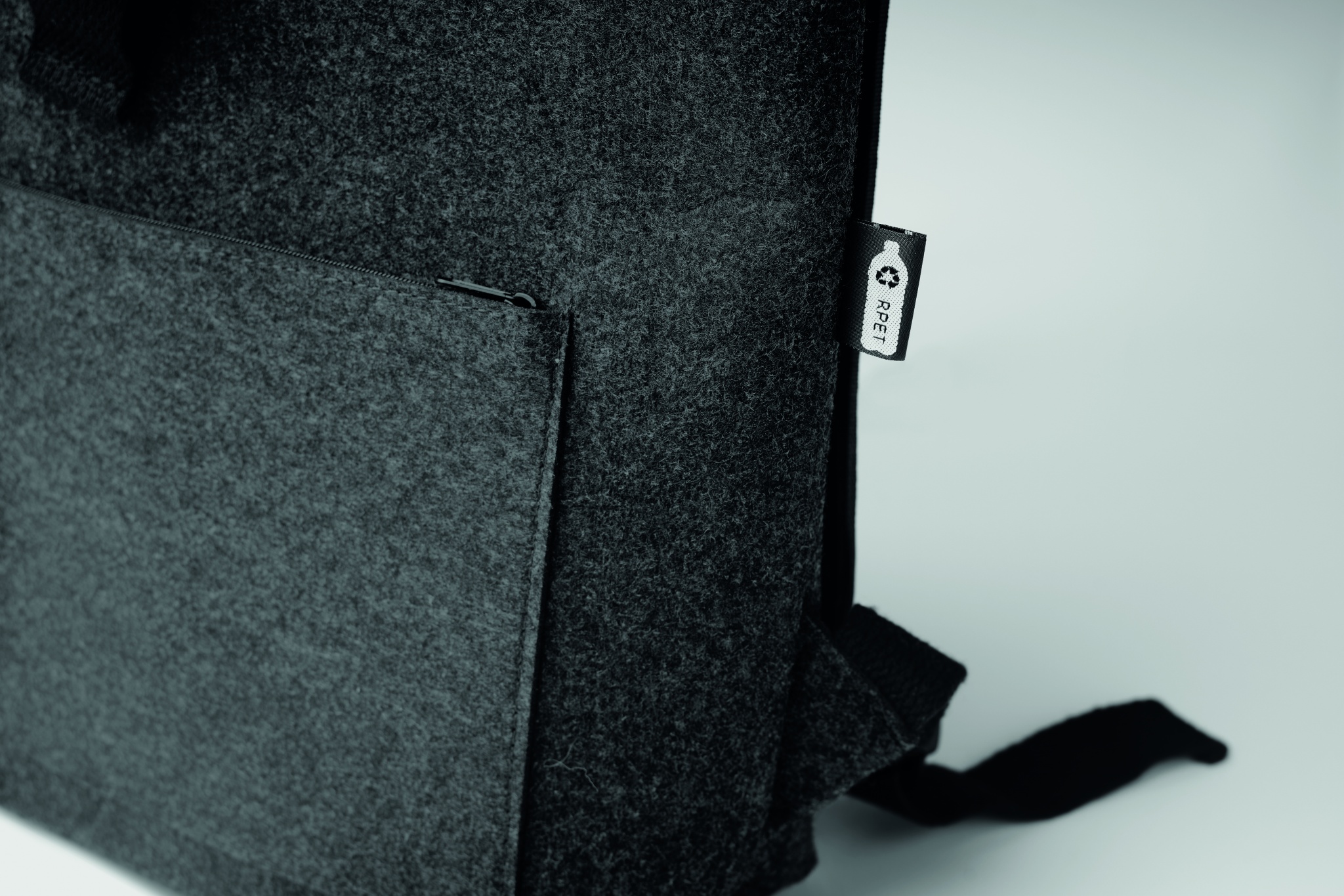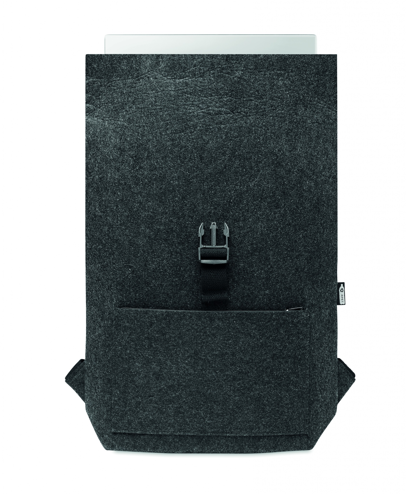Рюкзак из переработанного войлока RPET с хлопковым ремешком и карманом на молнии спереди. Имеет отделение для ноутбука.
