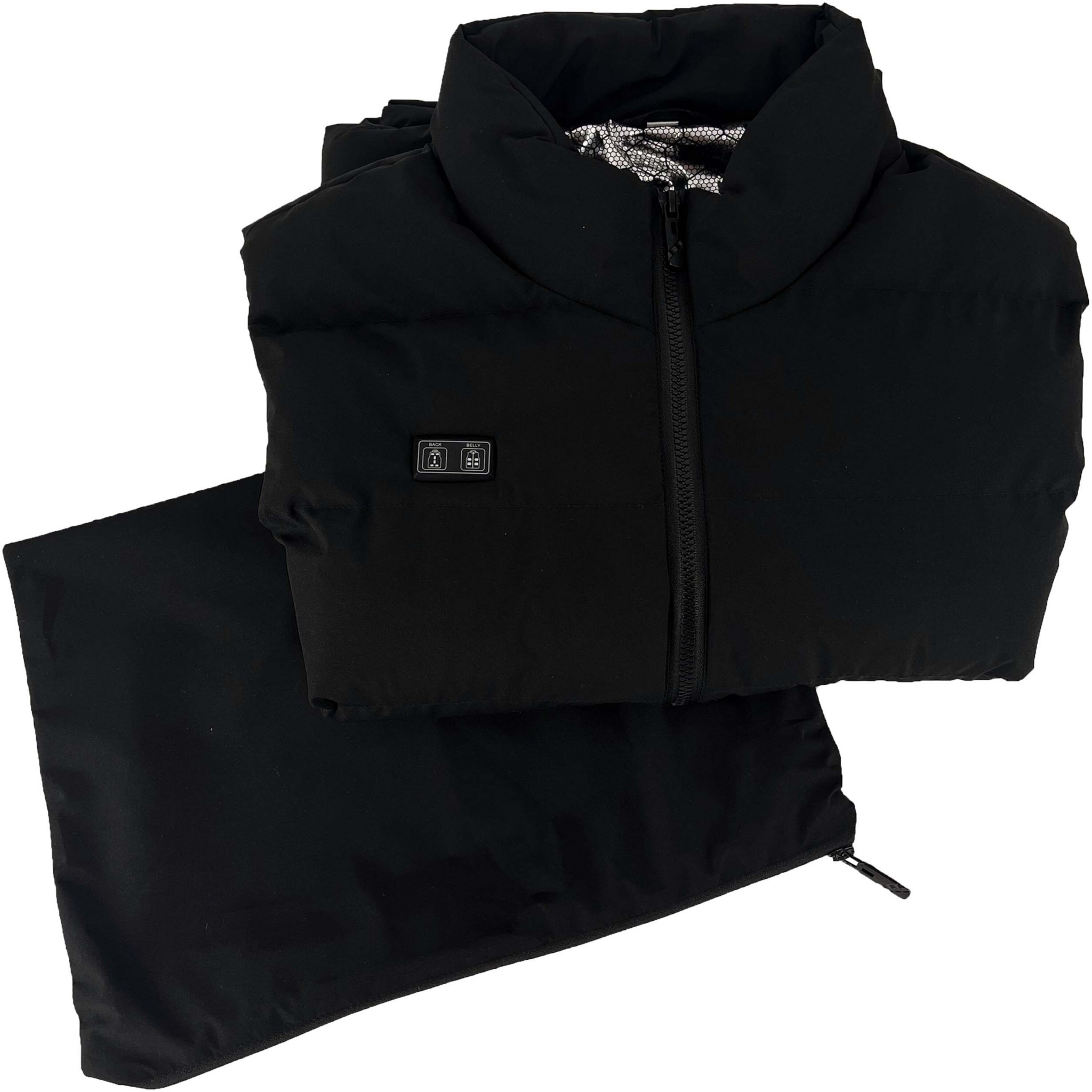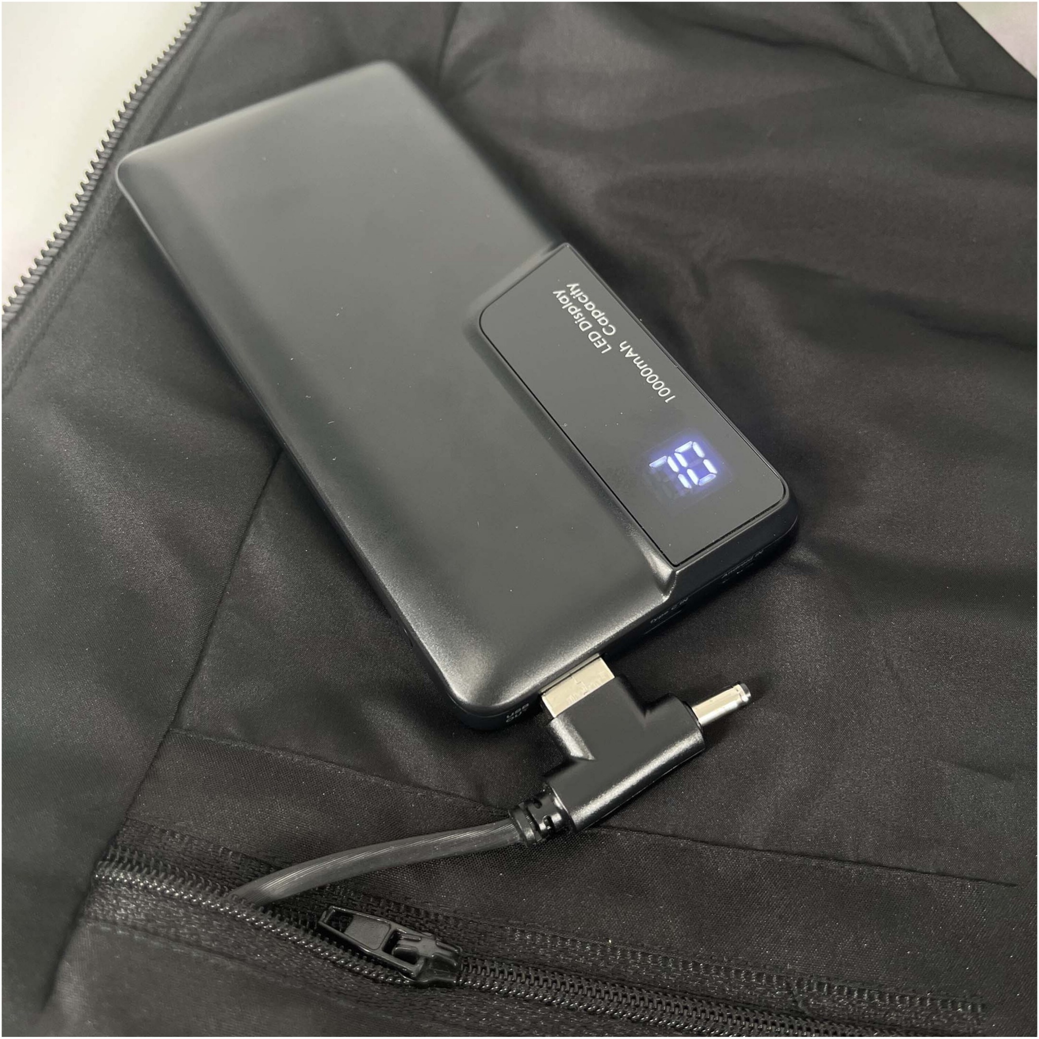 Инновационный универсальный ветрозащитный жилет равномерно согревает благодаря 11 нагревательным накладкам, расположенным спереди, сзади и сверху жилета. Доступны три уровня температуры (низкий, средний и высокий). Доступны четыре различных размера: S-M (длина 58 см х грудь 48 см), M-L (длина 64 см х грудь 54 см) и L-XL (длина 66 см х грудь 60 см), XXL-XXL (длина 74 х грудь 66 см). Жилет был разработан с боковыми молниями, благодаря чему он идеально подходит для любой формы тела и для людей, которые хотят сохранить свободу движения в холодную погоду. Портативное зарядное устройство на 10 000 мА·ч входит в комплект поставки и уже подключено для удобства использования. Упаковывается в пакет из ТПУ (38 x 30 см).