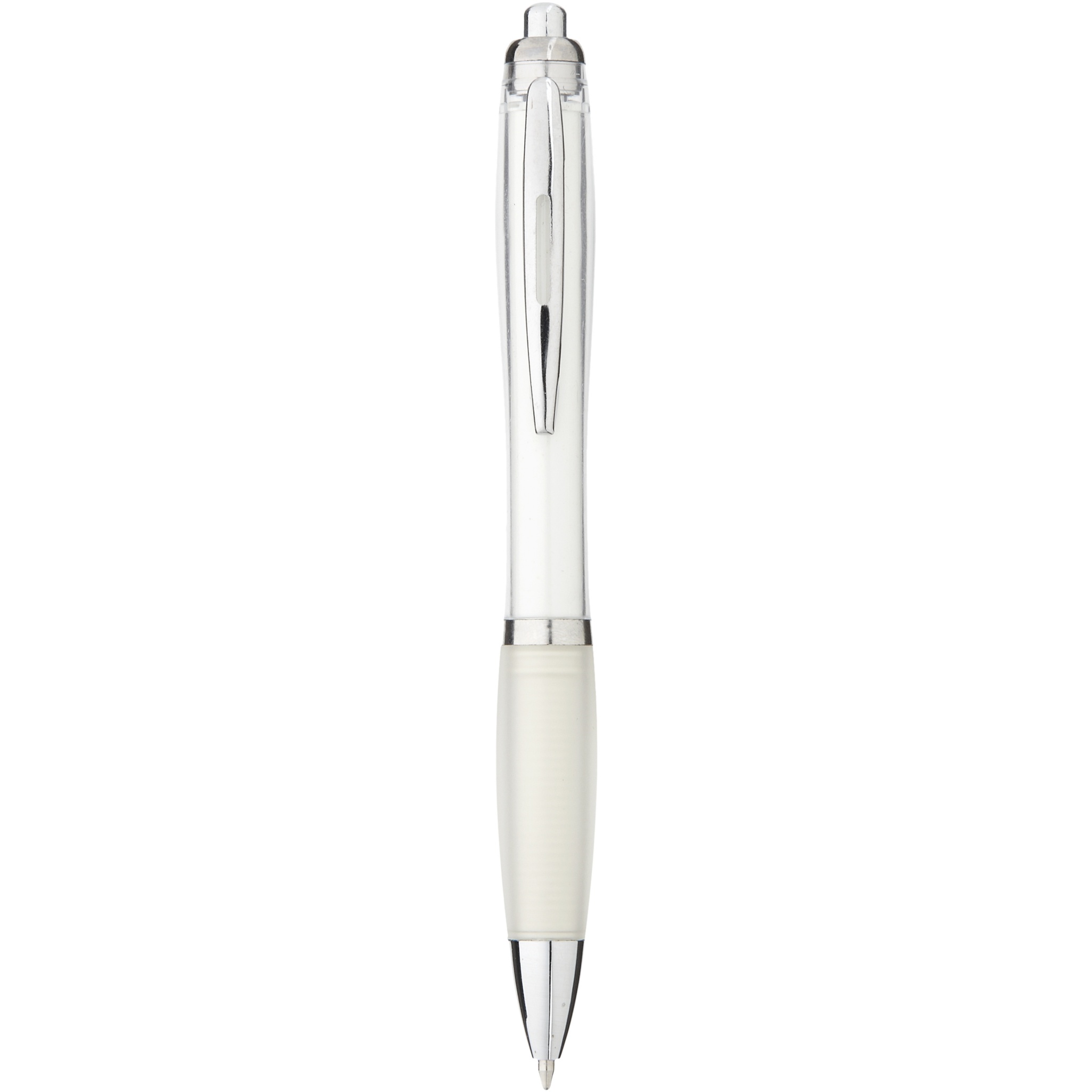 Шариковая ручка с кнопочным механизмом и мягким держателем.
