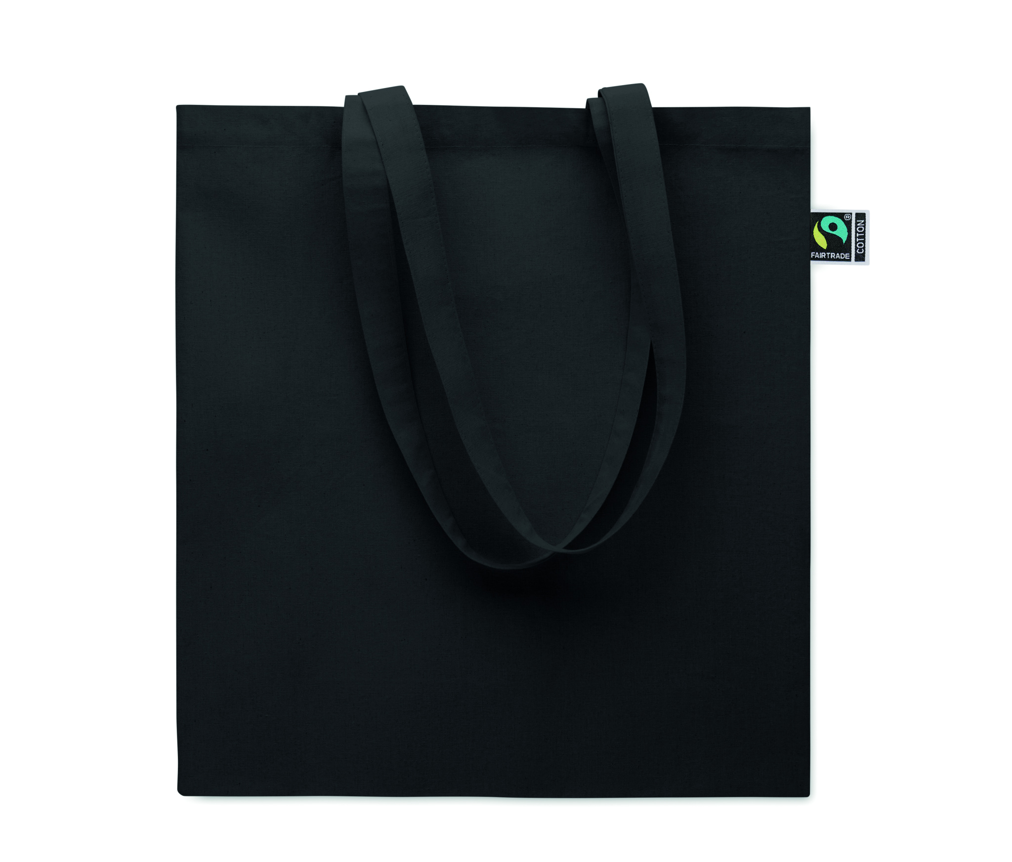 Shopping bag with long handles and gusset made of Fairtrade cotton. 180 gr/m².