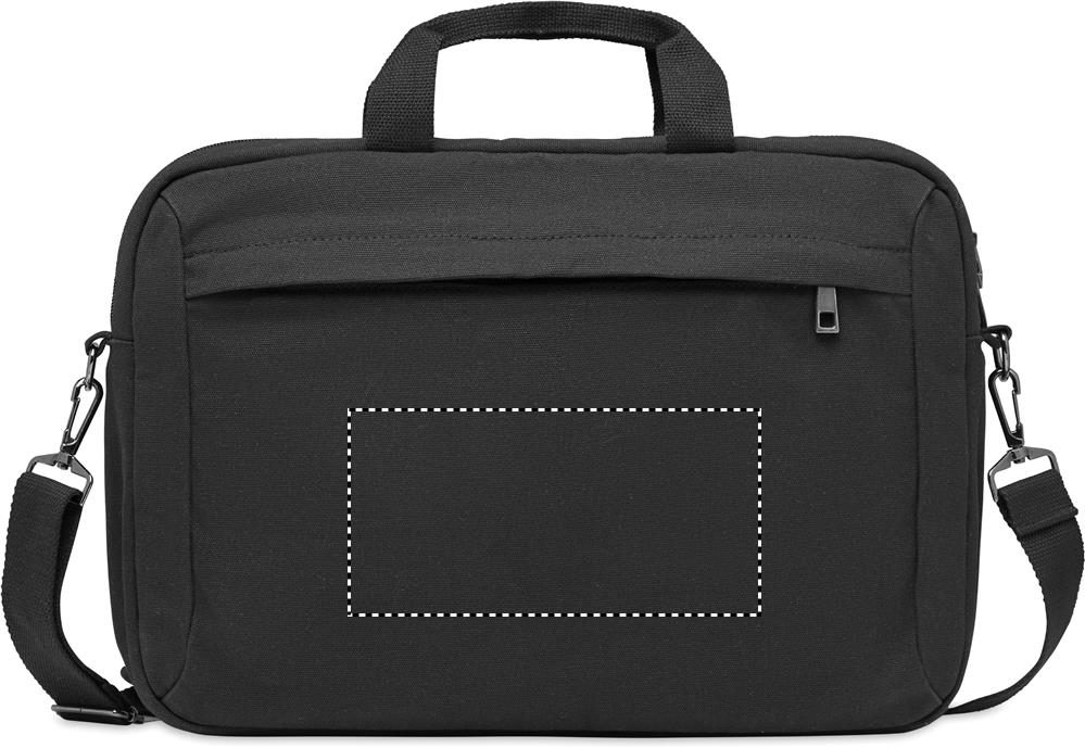 Компьютерная сумка из плотной парусины 340 гр/м². Съемный регулируемый плечевой ремень с мягкой подкладкой. Задний ремень для крепления на чемодане.