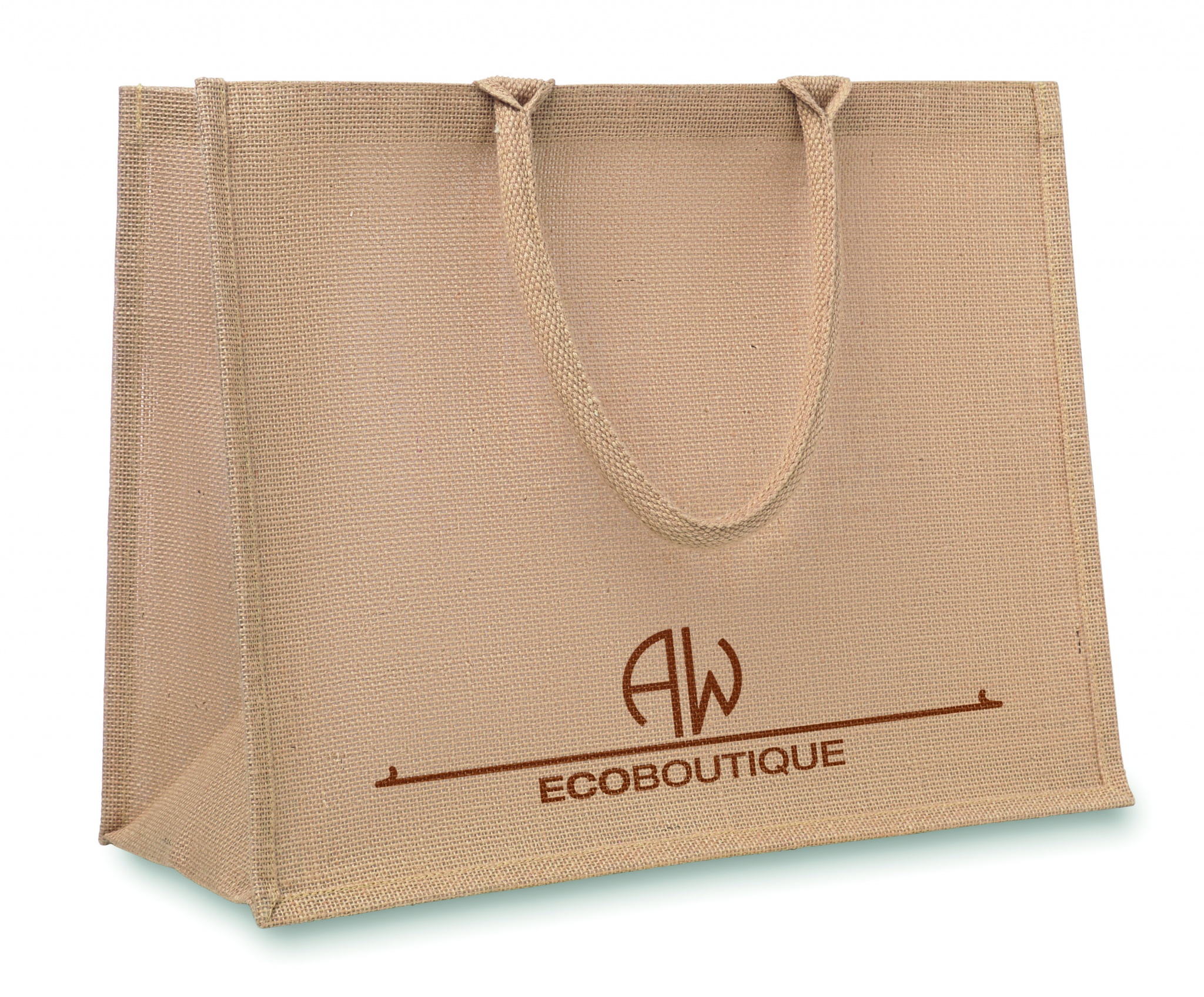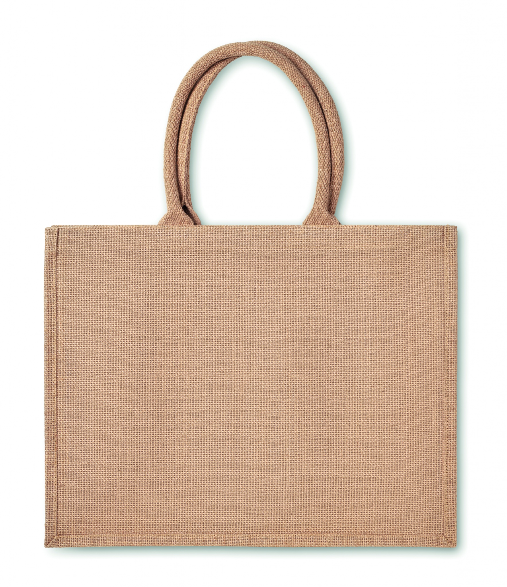 Сумка для покупок из джута с элементами из хлопка. Внутрення ламинация. Короткие ручки.
