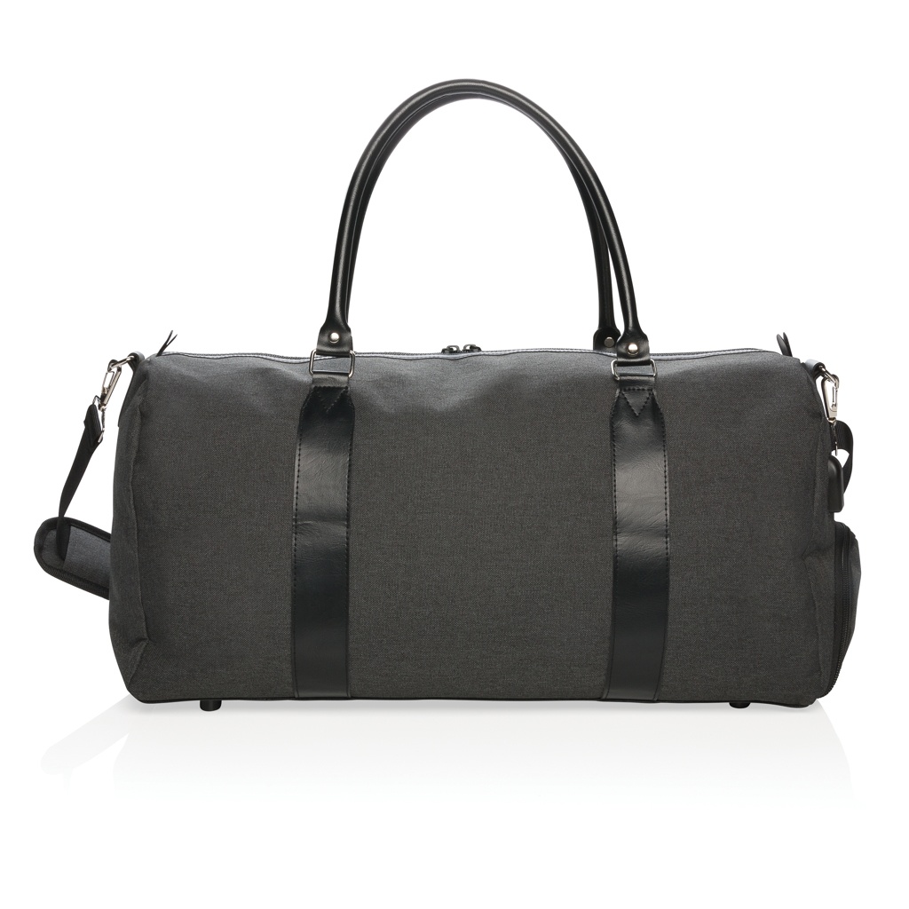 Современная и минималистичная сумка для выходных из полиэстера 600D с ручками из полиуретана и удобным плечевым ремнем. Большое основное отделение с достаточным количеством места для ваших необходимых вещей на выходных или спортивного снаряжения. Легко подключайте свой внешний аккумулятор к встроенному порту зарядки USB A и заряжайте свой телефон или планшет на ходу. Также поставляется с карманом быстрого доступа справа. Не содержит ПВХ.