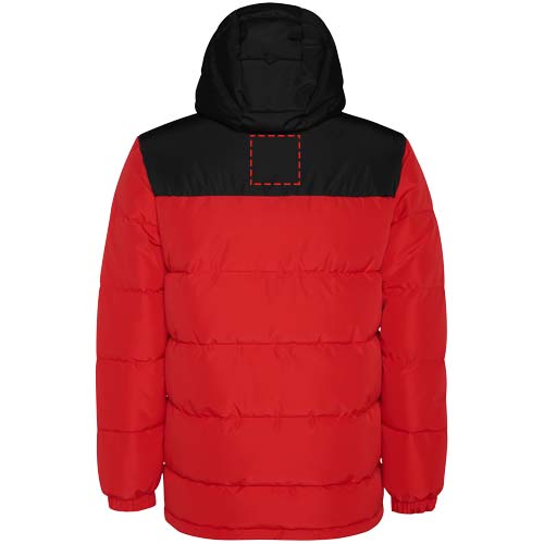 Утепленная куртка с фиксированным капюшоном. Передняя молния прикрыта планкой. Защита подбородка. Два боковых кармана на молнии. Эластичные манжеты.